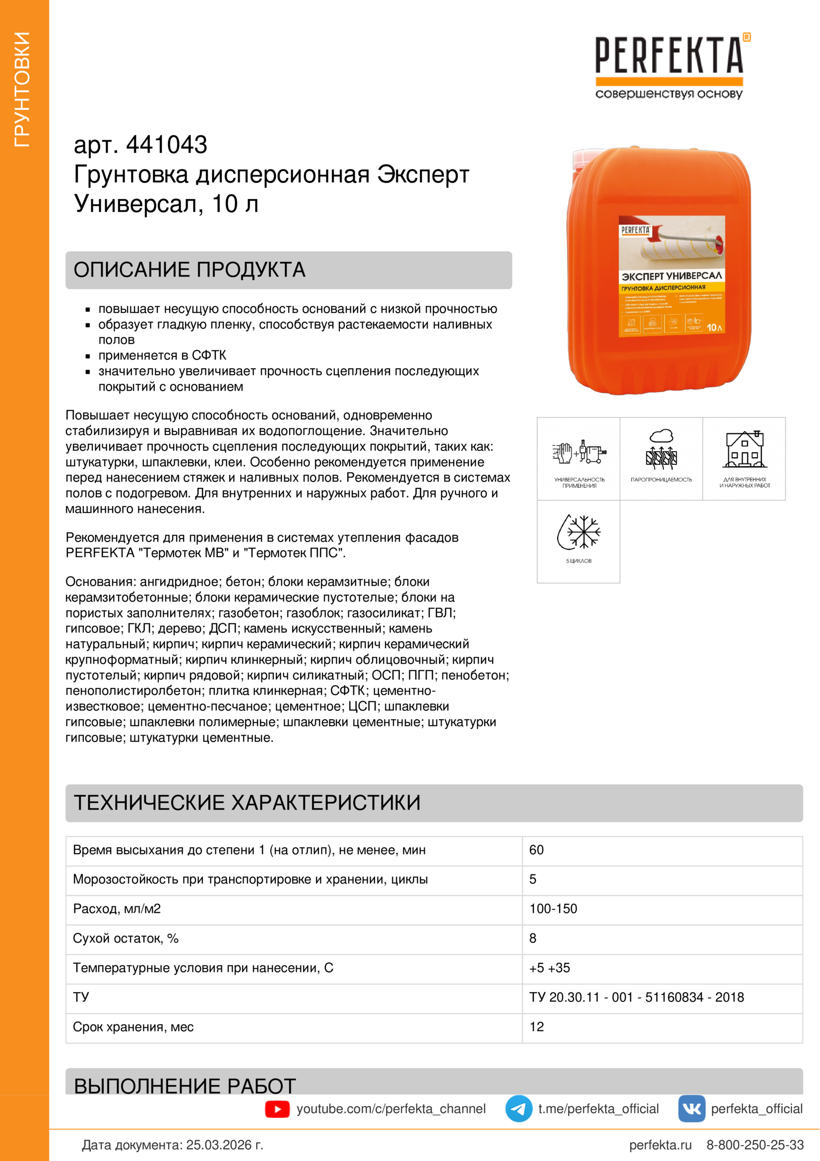 Все рекомендации и технические характеристики верны при температуре окружающей среды +20°С и относительной влажности 60 %. Качество материала гарантируется только при точном соблюдении инструкции производителя по технологии применения и требований СНиП и СП. Данная инструкция теряет силу после появления новой версии на сайте perfekta.ru.