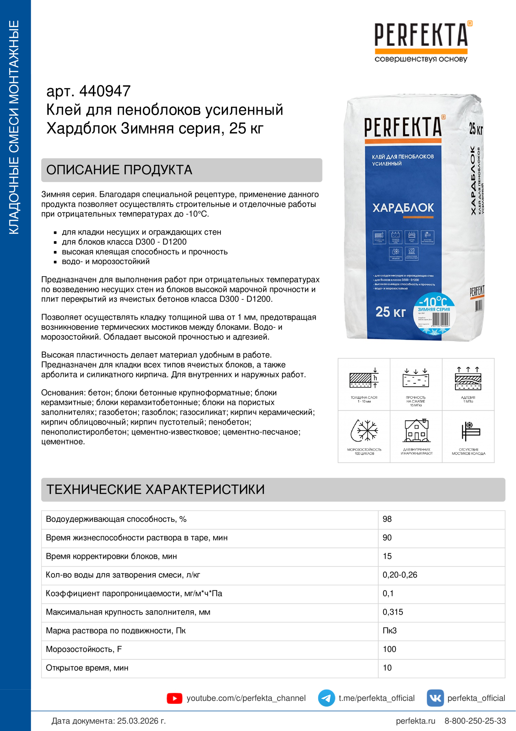 Все рекомендации и технические характеристики верны при температуре окружающей среды +20°С и относительной влажности 60 %. Качество материала гарантируется только при точном соблюдении инструкции производителя по технологии применения и требований СНиП и СП. Данная инструкция теряет силу после появления новой версии на сайте perfekta.ru.