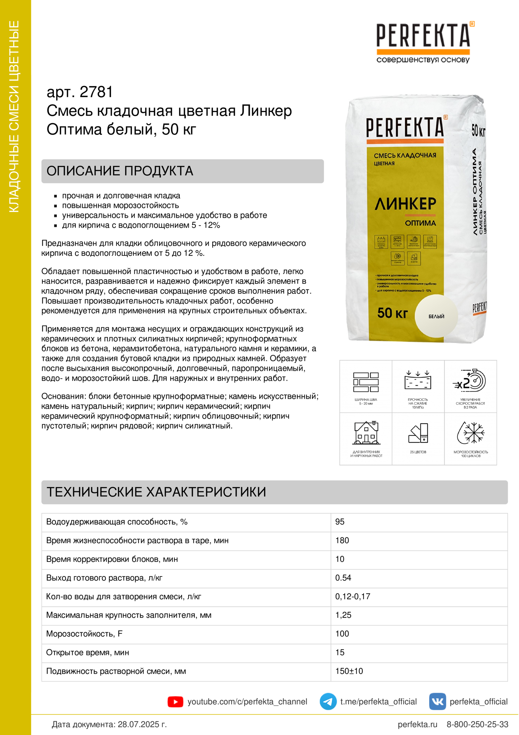 Смесь кладочная цветная Линкер Оптима белый, 50 кг