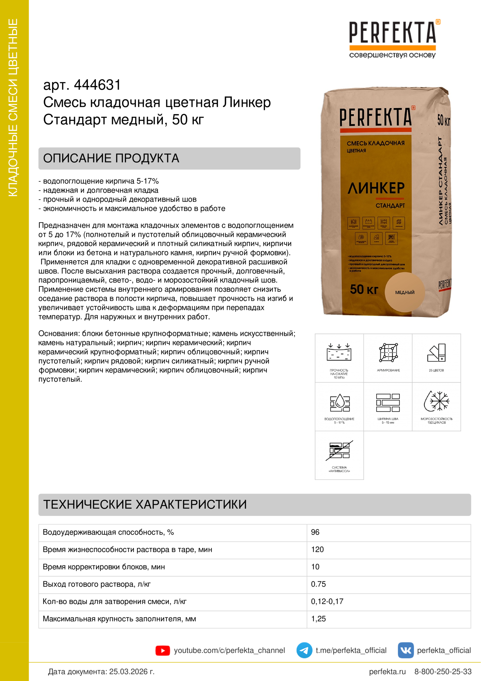 Все рекомендации и технические характеристики верны при температуре окружающей среды +20°С и относительной влажности 60 %. Качество материала гарантируется только при точном соблюдении инструкции производителя по технологии применения и требований СНиП и СП. Данная инструкция теряет силу после появления новой версии на сайте perfekta.ru.