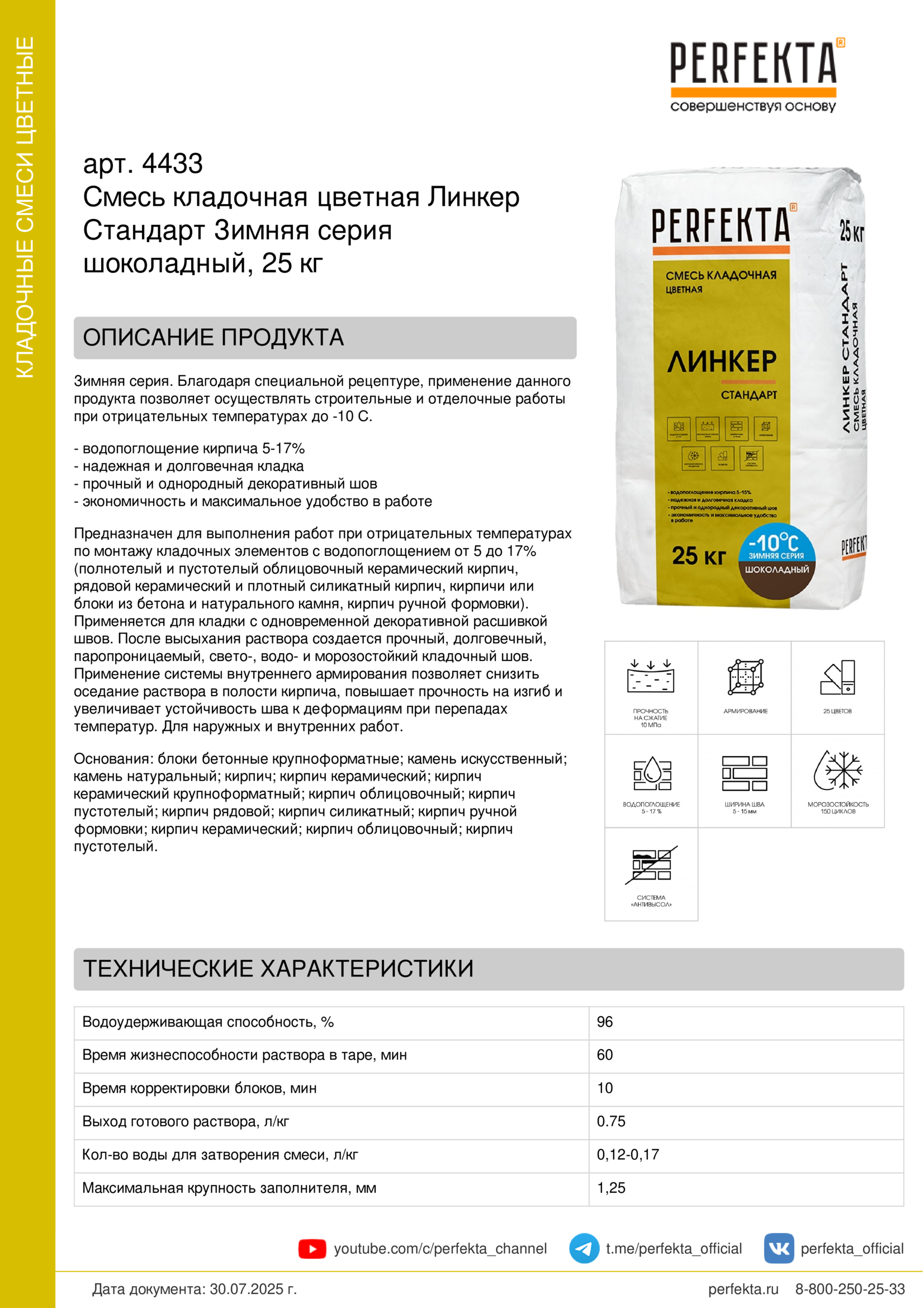 Все рекомендации и технические характеристики верны при температуре окружающей среды +20°С и относительной влажности 60 %. Качество материала гарантируется только при точном соблюдении инструкции производителя по технологии применения и требований СНиП и СП. Данная инструкция теряет силу после появления новой версии на сайте perfekta.ru.