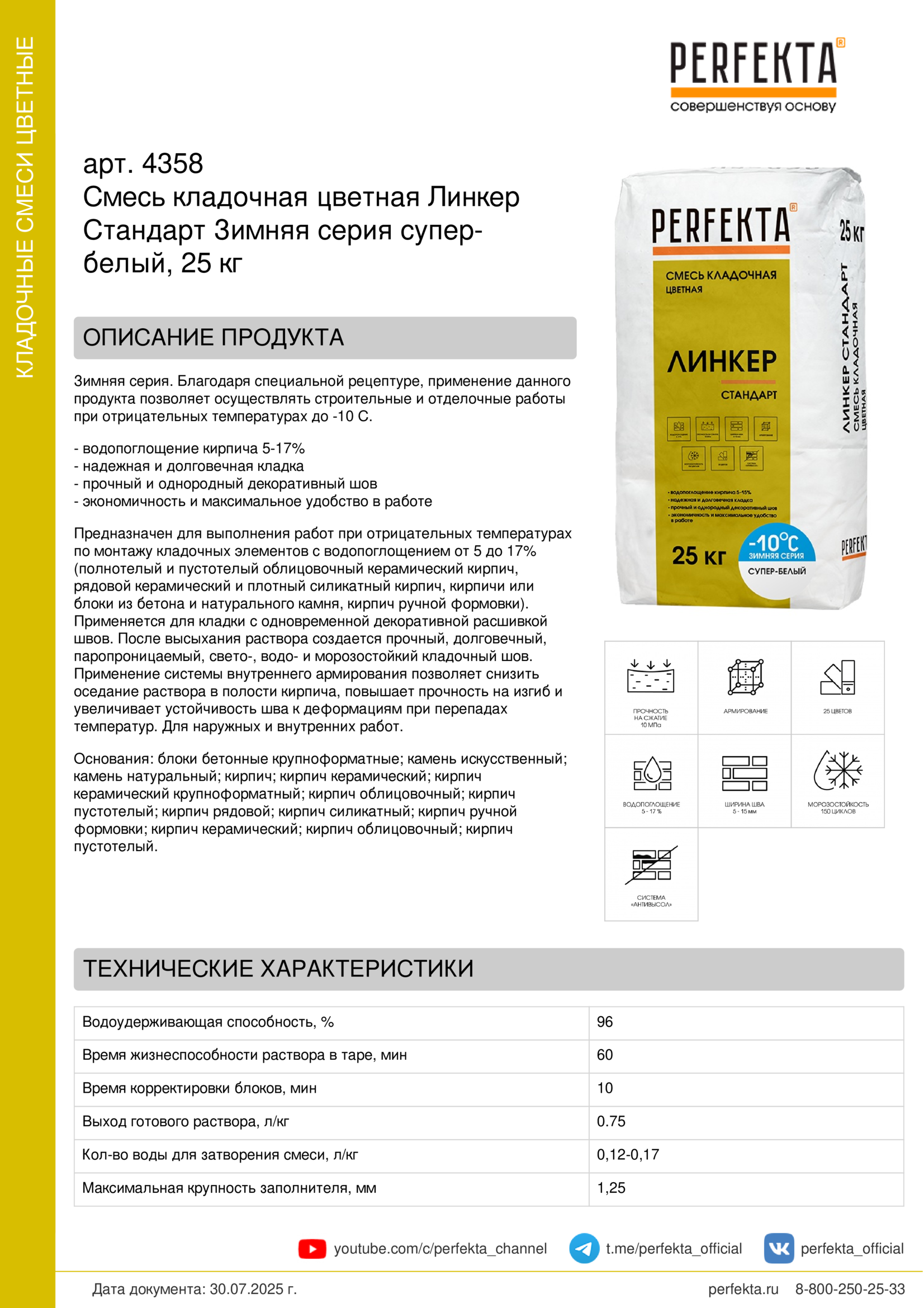 Все рекомендации и технические характеристики верны при температуре окружающей среды +20°С и относительной влажности 60 %. Качество материала гарантируется только при точном соблюдении инструкции производителя по технологии применения и требований СНиП и СП. Данная инструкция теряет силу после появления новой версии на сайте perfekta.ru.