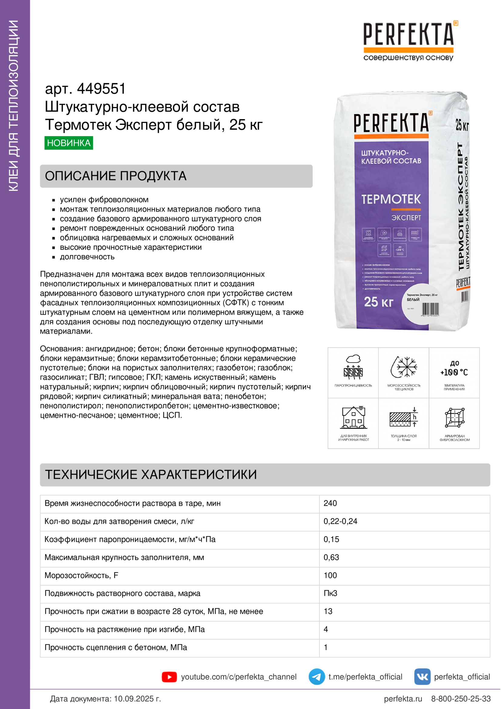 Все рекомендации и технические характеристики верны при температуре окружающей среды +20°С и относительной влажности 60 %. Качество материала гарантируется только при точном соблюдении инструкции производителя по технологии применения и требований СП 293.1325800.2017. Данная инструкция теряет силу после появления новой версии на сайте perfekta.ru.
