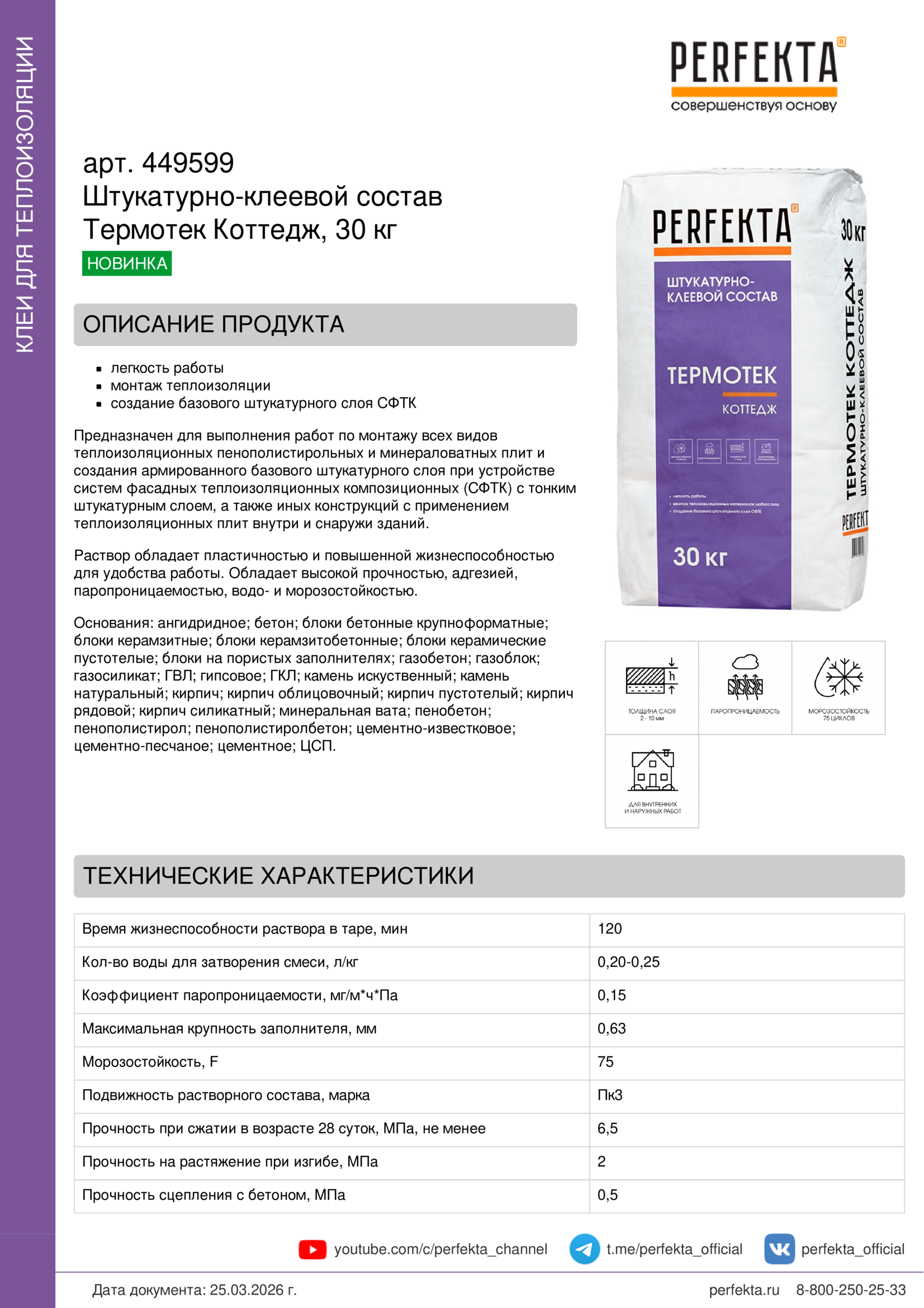 Все рекомендации и технические характеристики верны при температуре окружающей среды +20°С и относительной влажности 60 %. Качество материала гарантируется только при точном соблюдении инструкции производителя по технологии применения и требований СП 293.1325800.2017. Данная инструкция теряет силу после появления новой версии на сайте perfekta.ru.