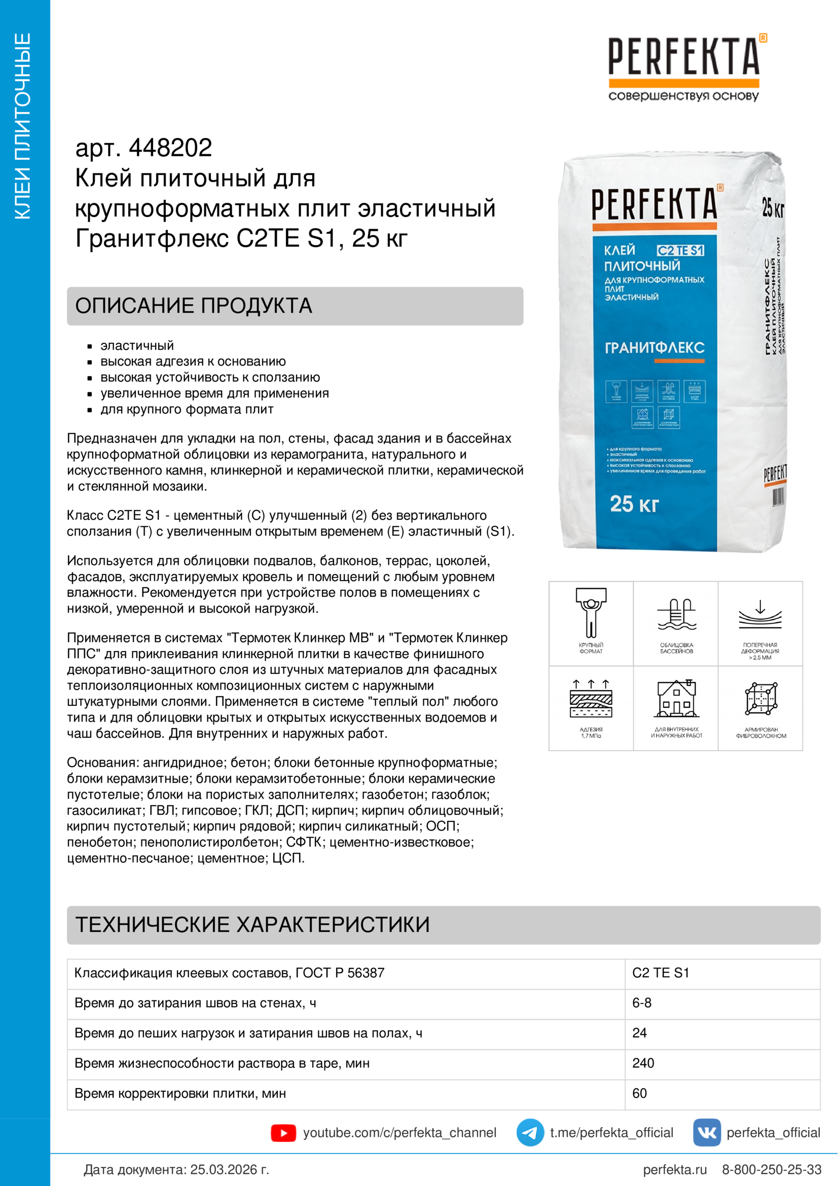 Все рекомендации и технические характеристики верны при температуре окружающей среды +20 С и относительной влажности 60 %. Качество материала гарантируется только при точном соблюдении инструкции Производителю по технологии применения и требований СНиП и СП. Данная инструкция теряет силу после появления новой версии на сайте perfekta.ru.