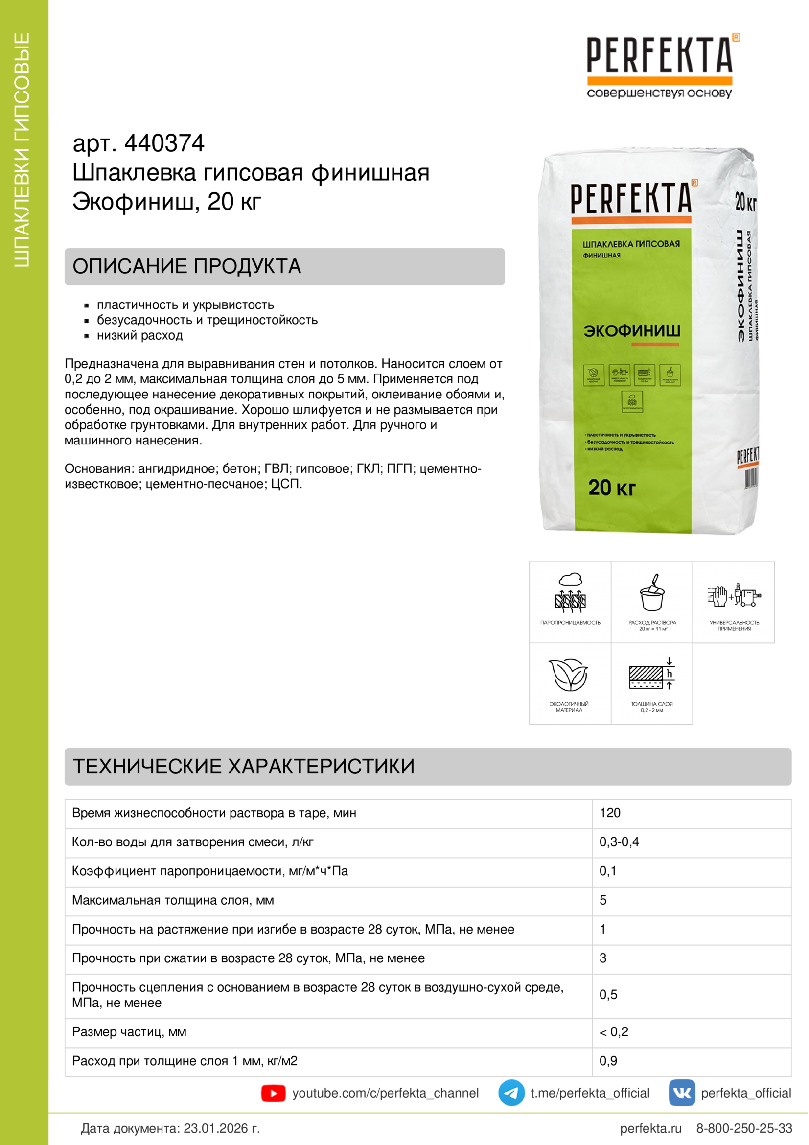 Шпаклевка гипсовая финишная Экофиниш, 20 кг