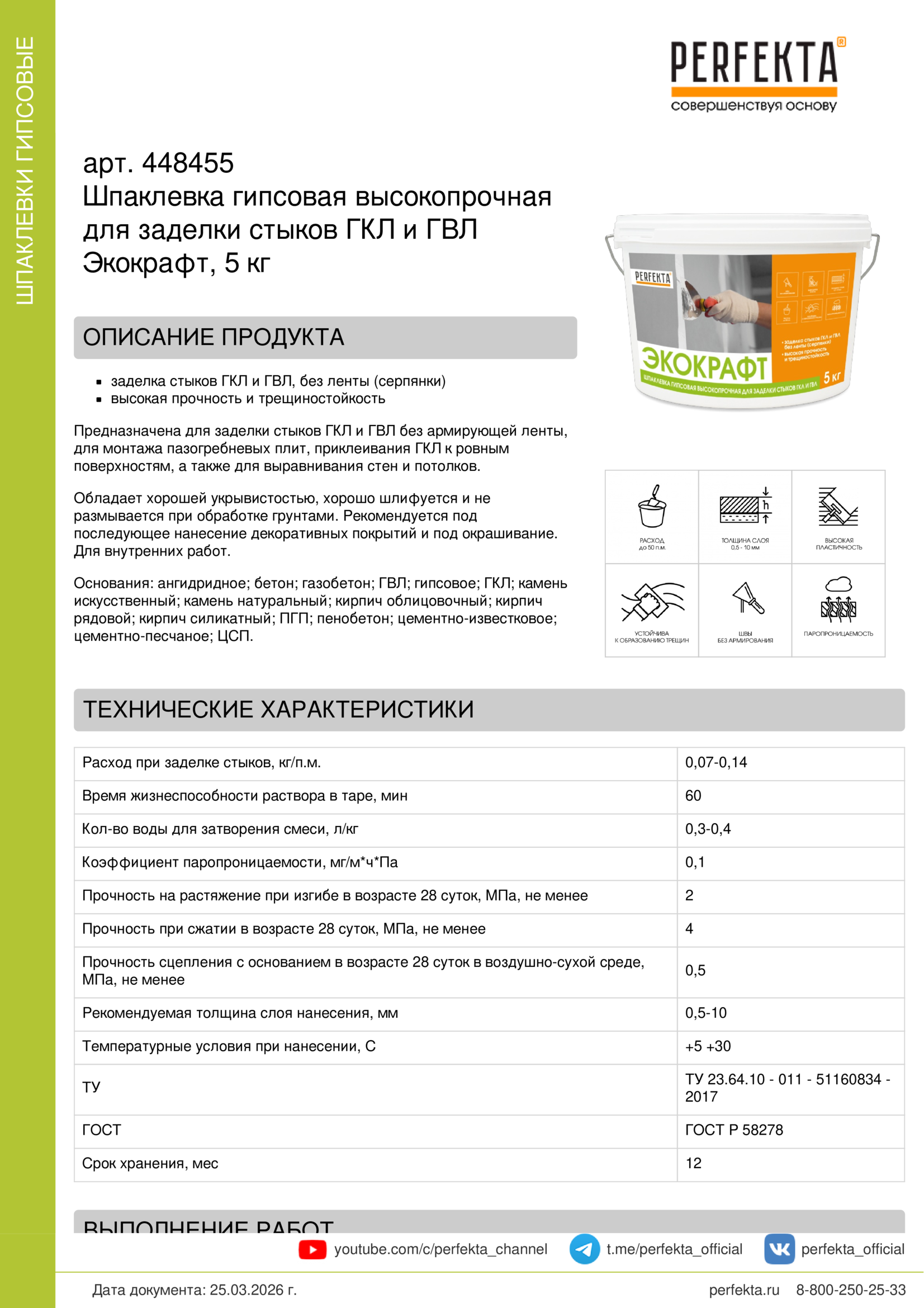 Обладает хорошей укрывистостью, хорошо шлифуется и не размывается при обработке грунтами. Рекомендуется под последующее нанесение декоративных покрытий и под окрашивание. Для внутренних работ.