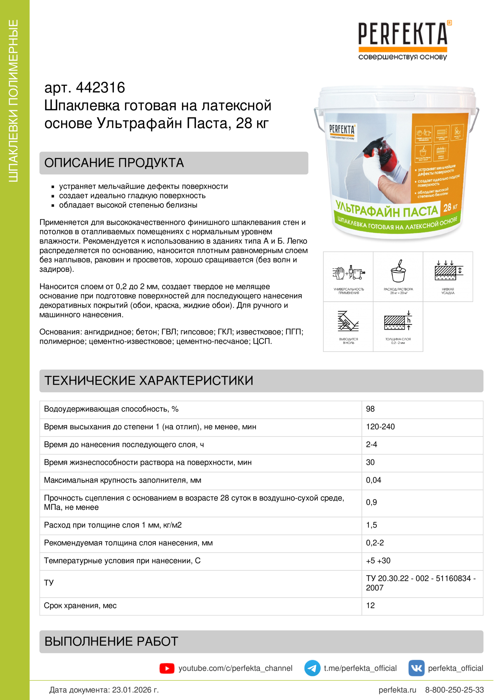 Шпаклевка готовая на латексной основе Ультрафайн Паста, 28 кг