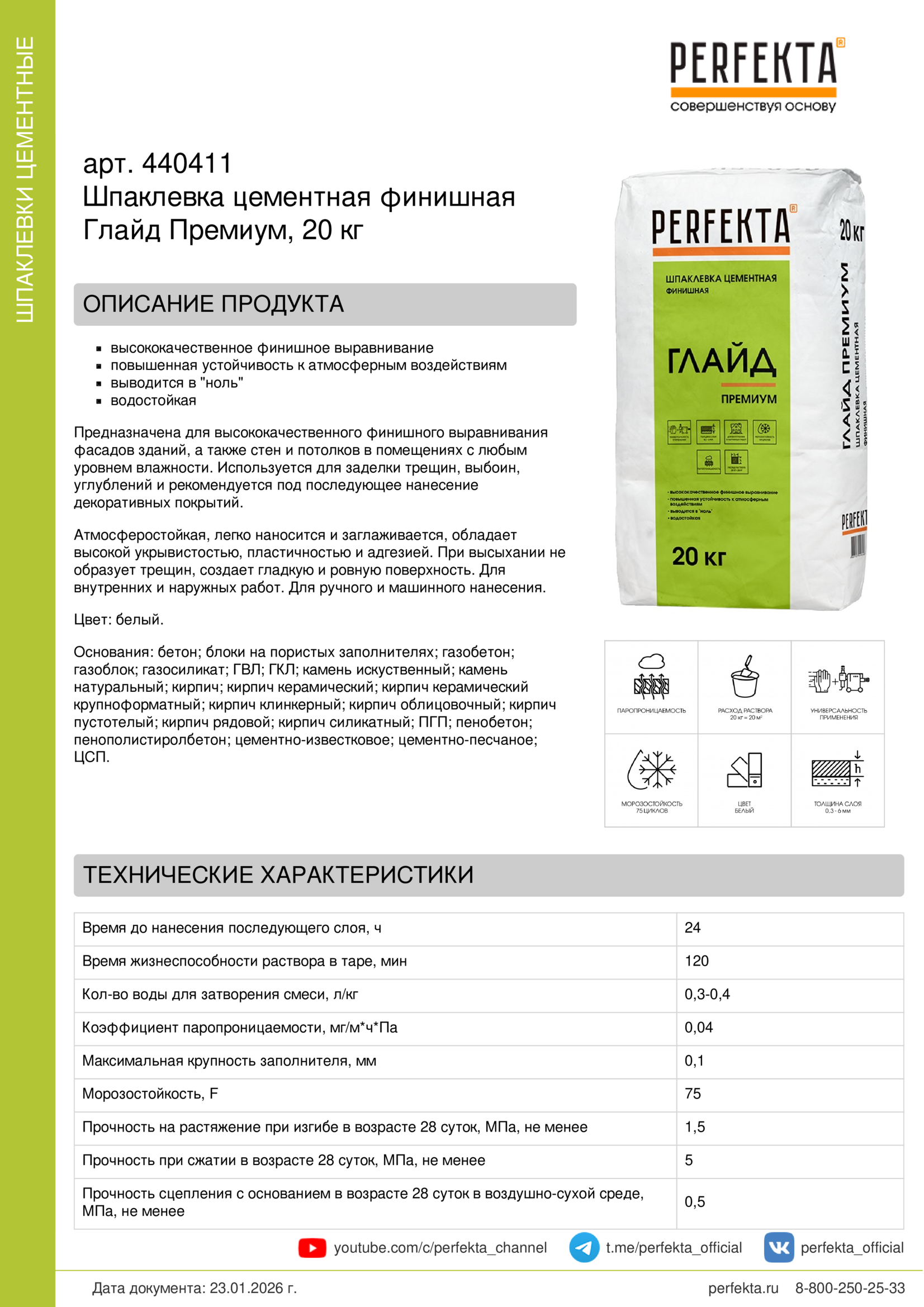 Все рекомендации и технические характеристики верны при температуре окружающей среды +20°С и относительной влажности 60 %. Качество материала гарантируется только при точном соблюдении инструкции производителя по технологии применения и требований СНиП и СП. Данная инструкция теряет силу после появления новой версии на сайте perfekta.ru.