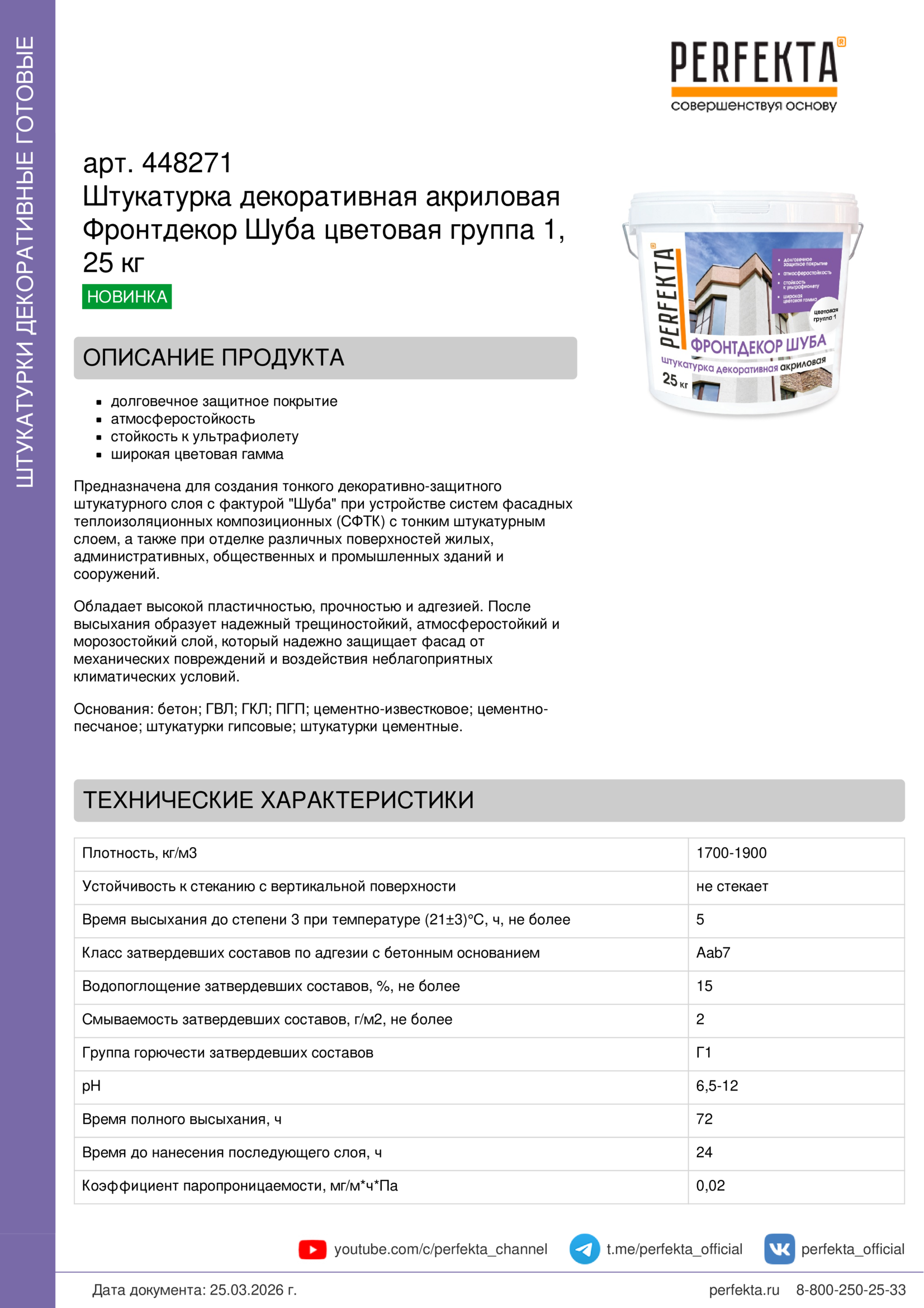 Обладает высокой пластичностью, прочностью и адгезией. После высыхания образует надежный трещиностойкий, атмосферостойкий и морозостойкий слой, который надежно защищает фасад от механических повреждений и воздействия неблагоприятных климатических условий.