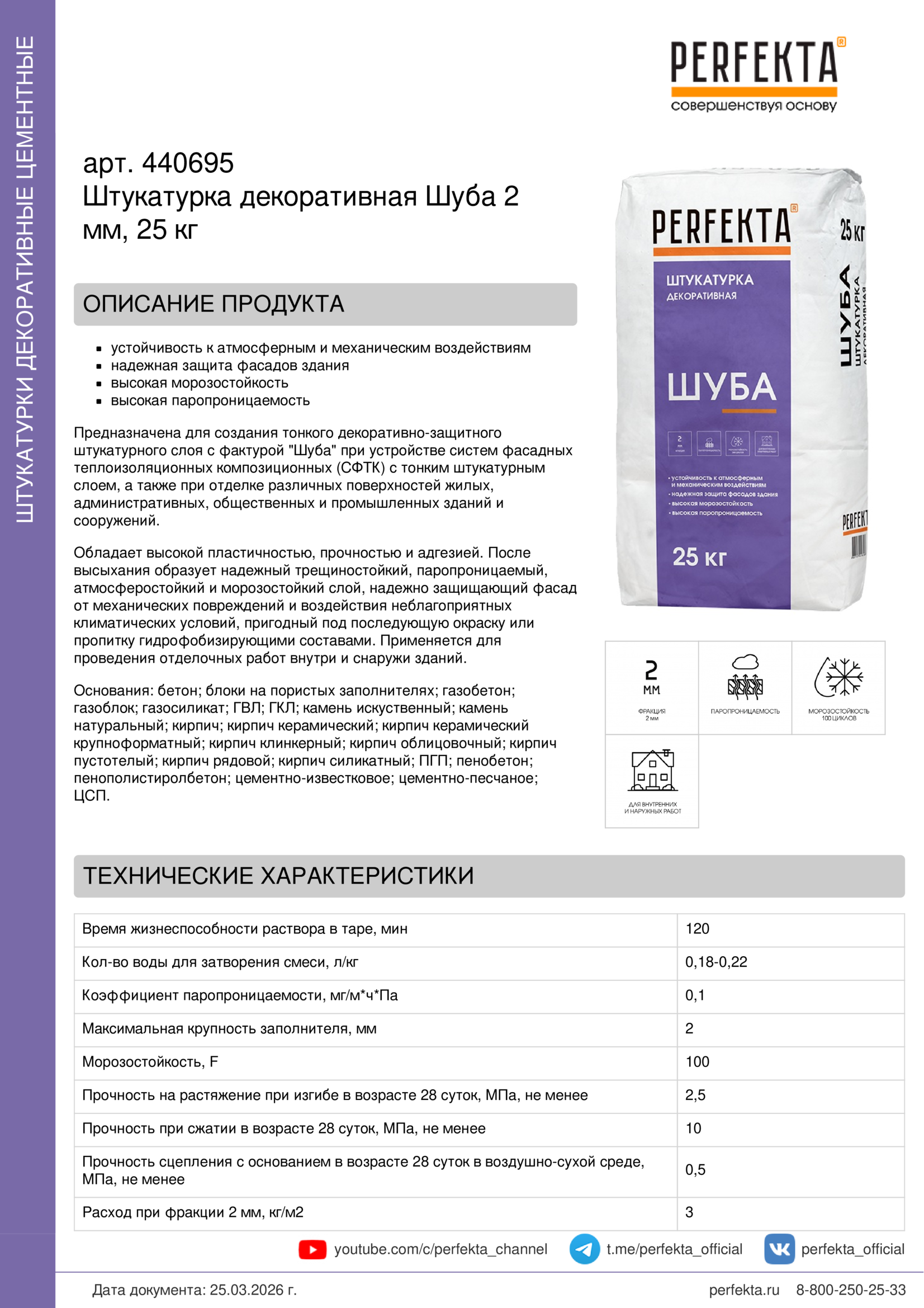 Все рекомендации и технические характеристики верны при температуре окружающей среды +20°С и относительной влажности 60 %. Качество материала гарантируется только при точном соблюдении инструкции производителя по технологии применения и требований СНиП и СП. Данная инструкция теряет силу после появления новой версии на сайте perfekta.ru.