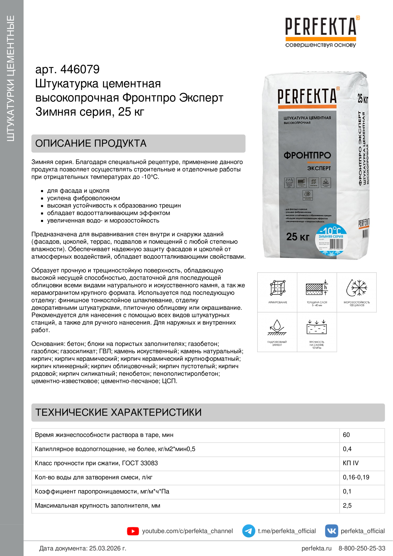 Все рекомендации и технические характеристики верны при температуре окружающей среды +20°С и относительной влажности 60%. Качество материала гарантируется только при точном соблюдении инструкции производителя по технологии применения и требований СНиП и СП. Данная инструкция теряет силу после появления новой версии на сайте perfekta.ru.