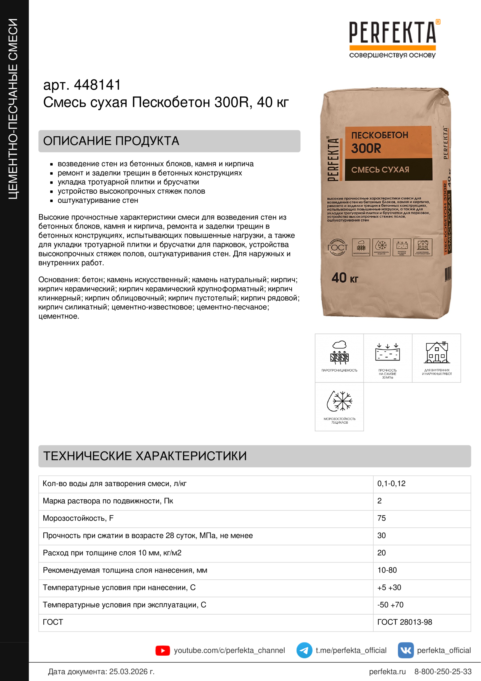 Высокие прочностные характеристики смеси для возведения стен из бетонных блоков, камня и кирпича, ремонта и заделки трещин в бетонных конструкциях, испытывающих повышенные нагрузки, а также для укладки тротуарной плитки и брусчатки для парковок, устройства высокопрочных стяжек полов, оштукатуривания стен. Для наружных и внутренних работ.