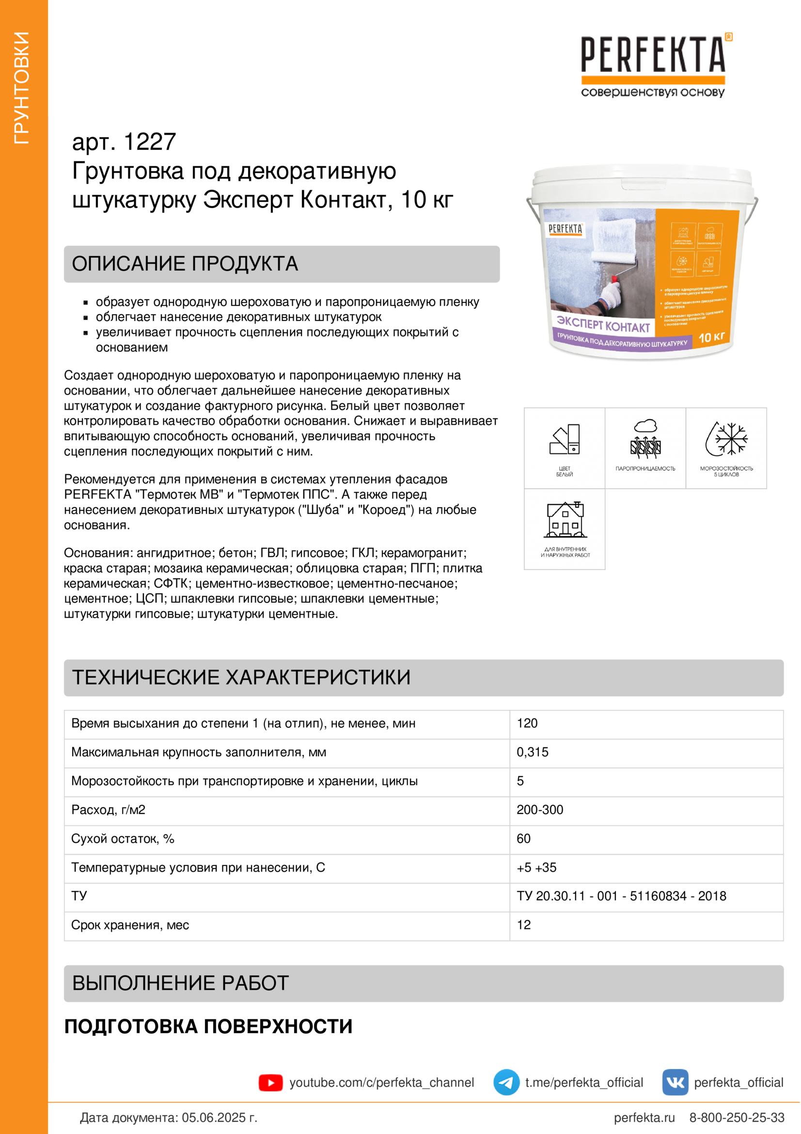 Рекомендуется для применения в системах утепления фасадов PERFEKTA "Термотек МВ" и "Термотек ППС". А также перед нанесением декоративных штукатурок ("Шуба" и "Короед") на любые основания.