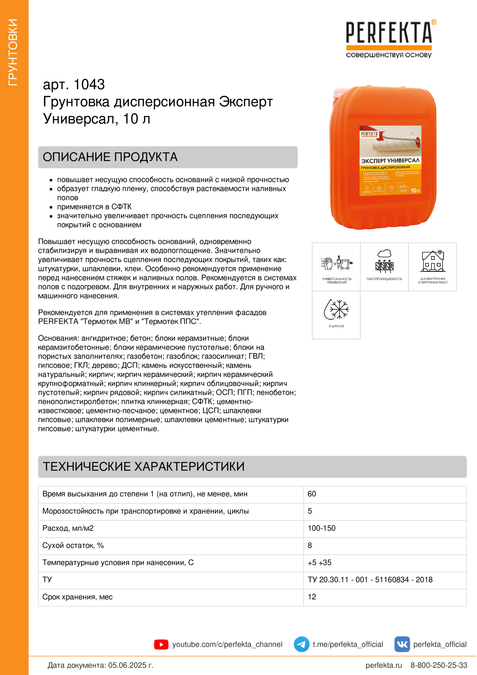 Все рекомендации и технические характеристики верны при температуре окружающей среды +20°С и относительной влажности 60 %. Качество материала гарантируется только при точном соблюдении инструкции производителя по технологии применения и требований СНиП и СП. Данная инструкция теряет силу после появления новой версии на сайте perfekta.ru.
