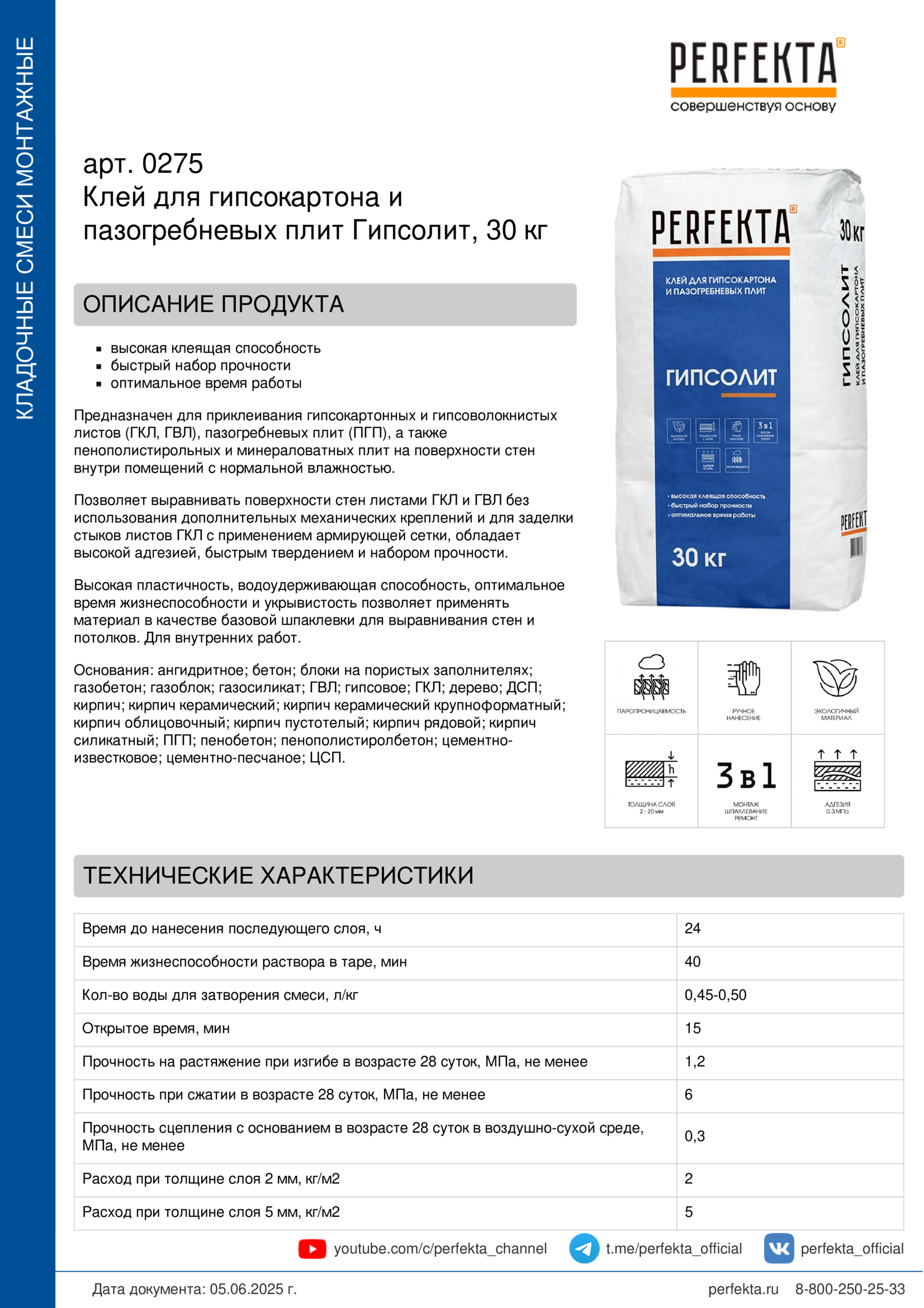 Все рекомендации и технические характеристики верны при температуре окружающей среды +20°С и относительной влажности 60 %. Качество материала гарантируется только при точном соблюдении инструкции производителя по технологии применения и требований СНиП и СП. Данная инструкция теряет силу после появления новой версии на сайте perfekta.ru.