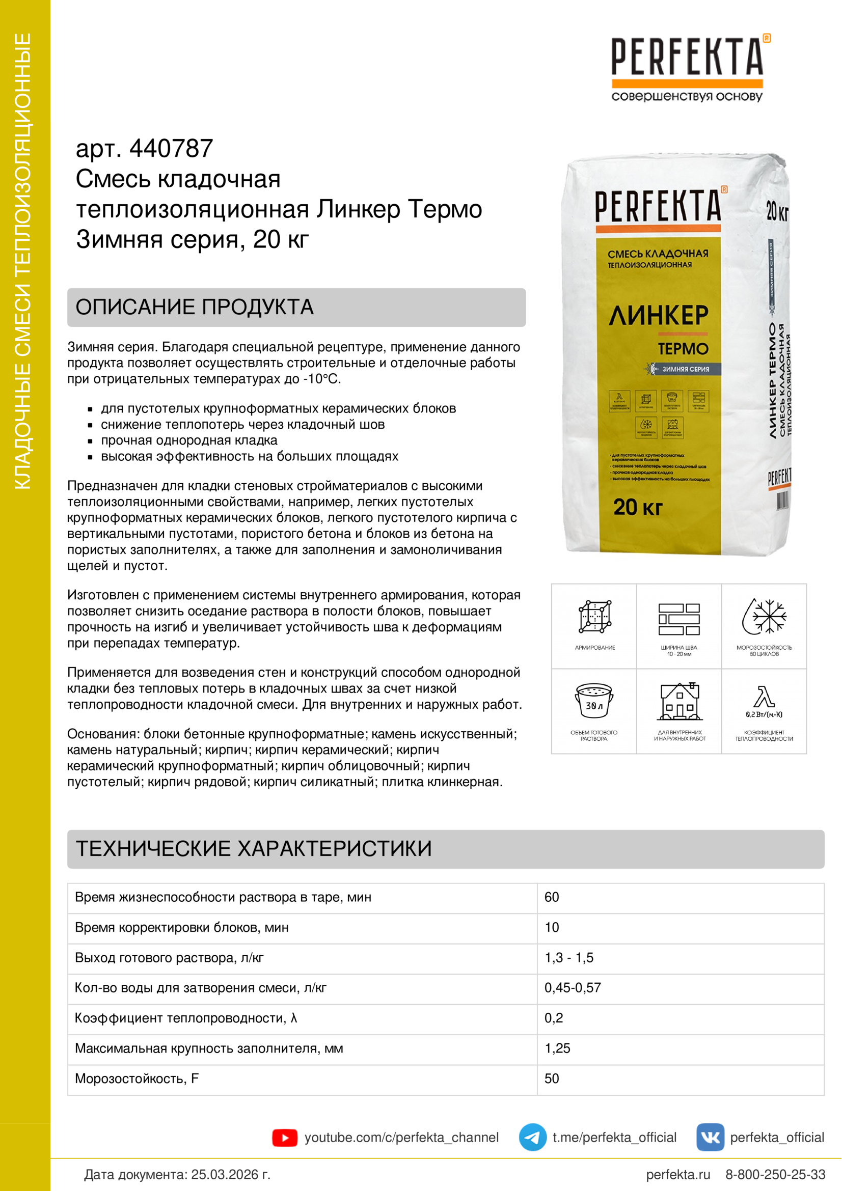 Зимняя серия. Благодаря специальной рецептуре, применение данного продукта позволяет осуществлять строительные и отделочные работы при отрицательных температурах до -10°С.