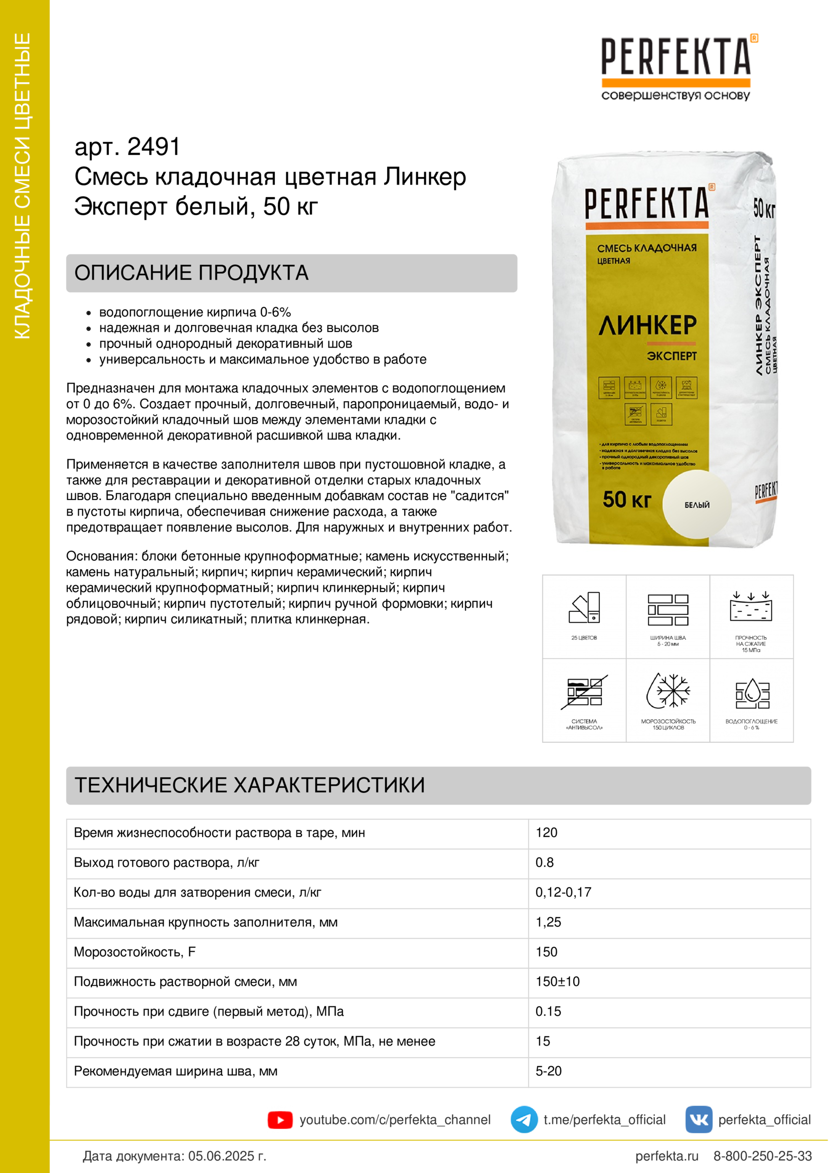Предназначен для монтажа кладочных элементов с водопоглощением от 0 до 6%. Создает прочный, долговечный, паропроницаемый, водо- и морозостойкий кладочный шов между элементами кладки с одновременной декоративной расшивкой шва кладки.