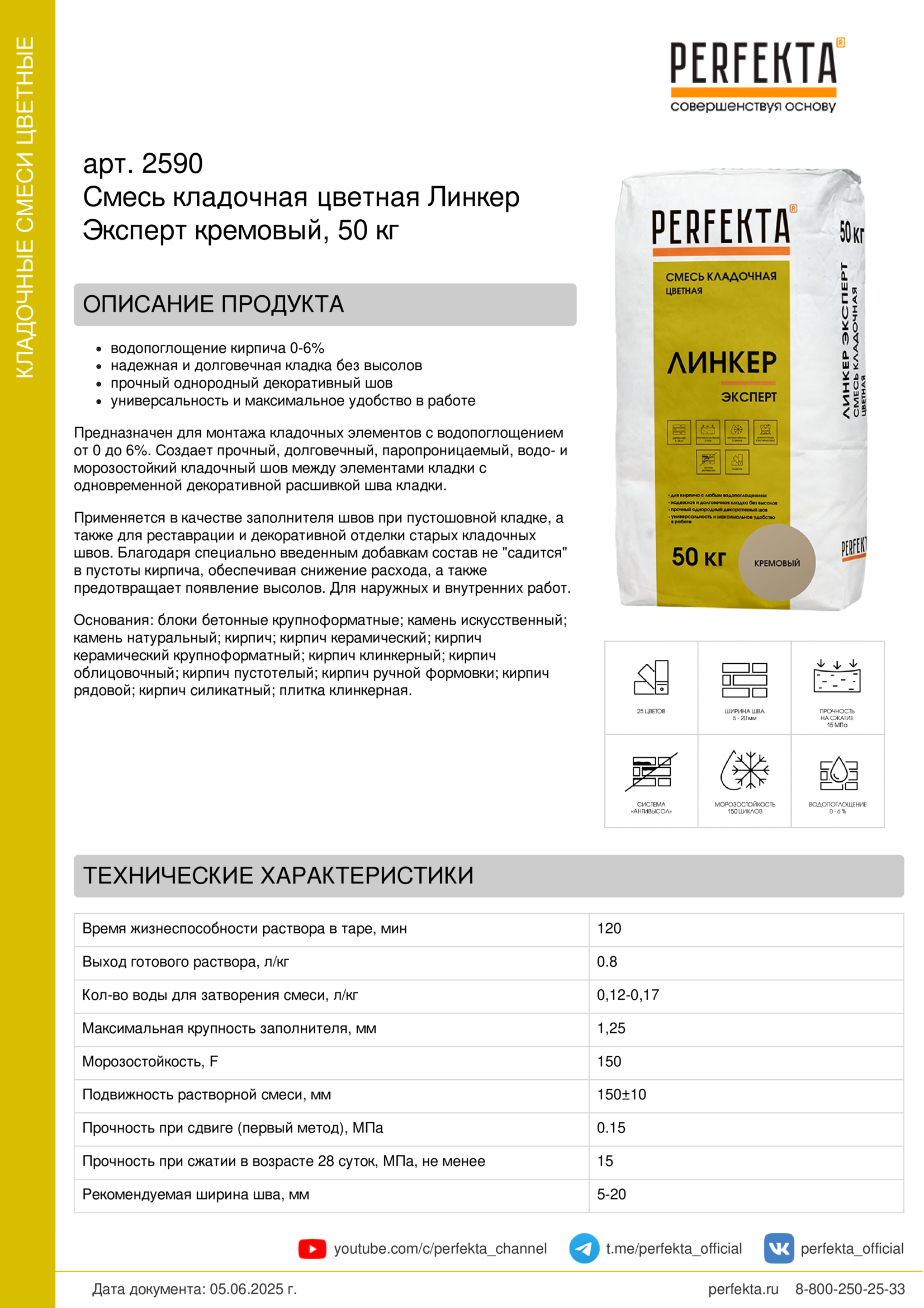 • Смесь кладочная цветная Линкер Эксперт кремовый, 50 кг