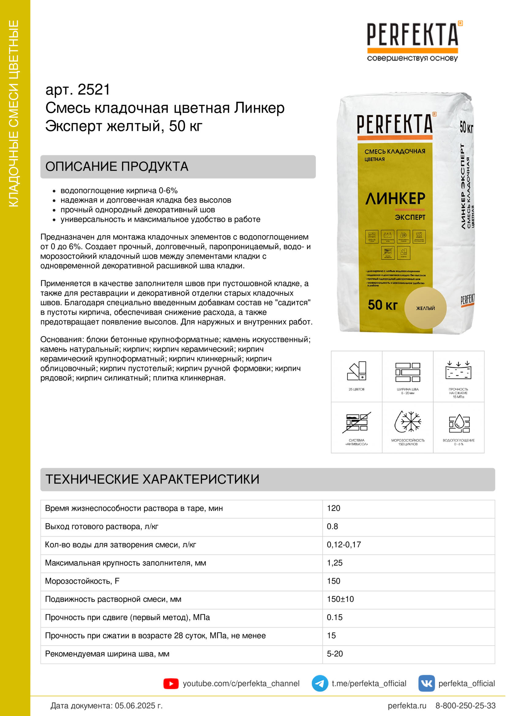 • Смесь кладочная цветная Линкер Эксперт желтый, 50 кг