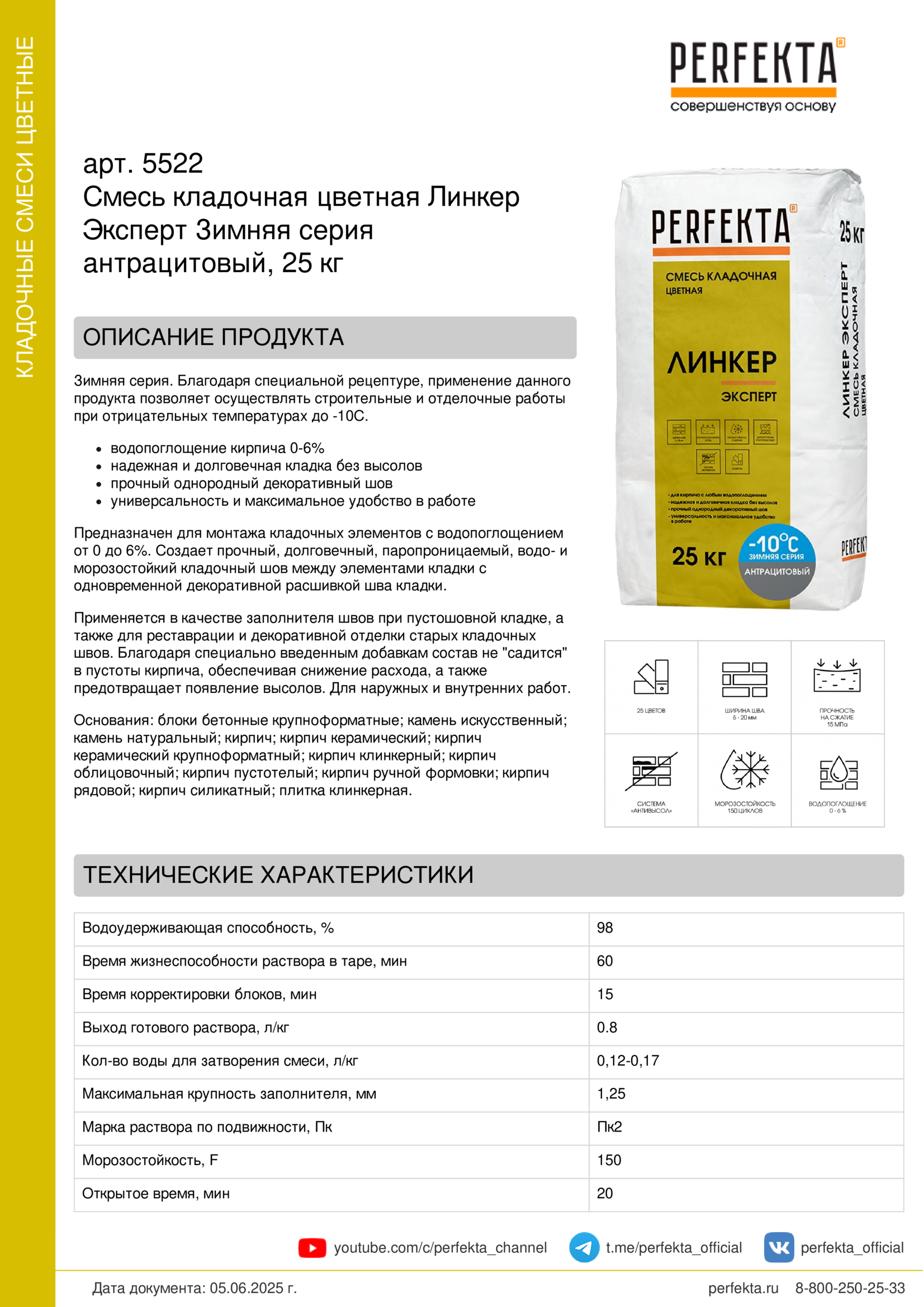 Предназначен для монтажа кладочных элементов с водопоглощением от 0 до 6%. Создает прочный, долговечный, паропроницаемый, водо- и морозостойкий кладочный шов между элементами кладки с одновременной декоративной расшивкой шва кладки.