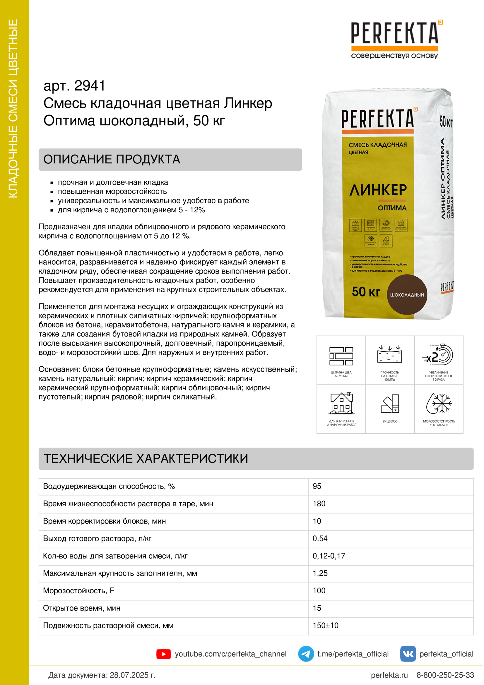 Предназначен для кладки облицовочного и рядового керамического кирпича с водопоглощением от 5 до 12 %.