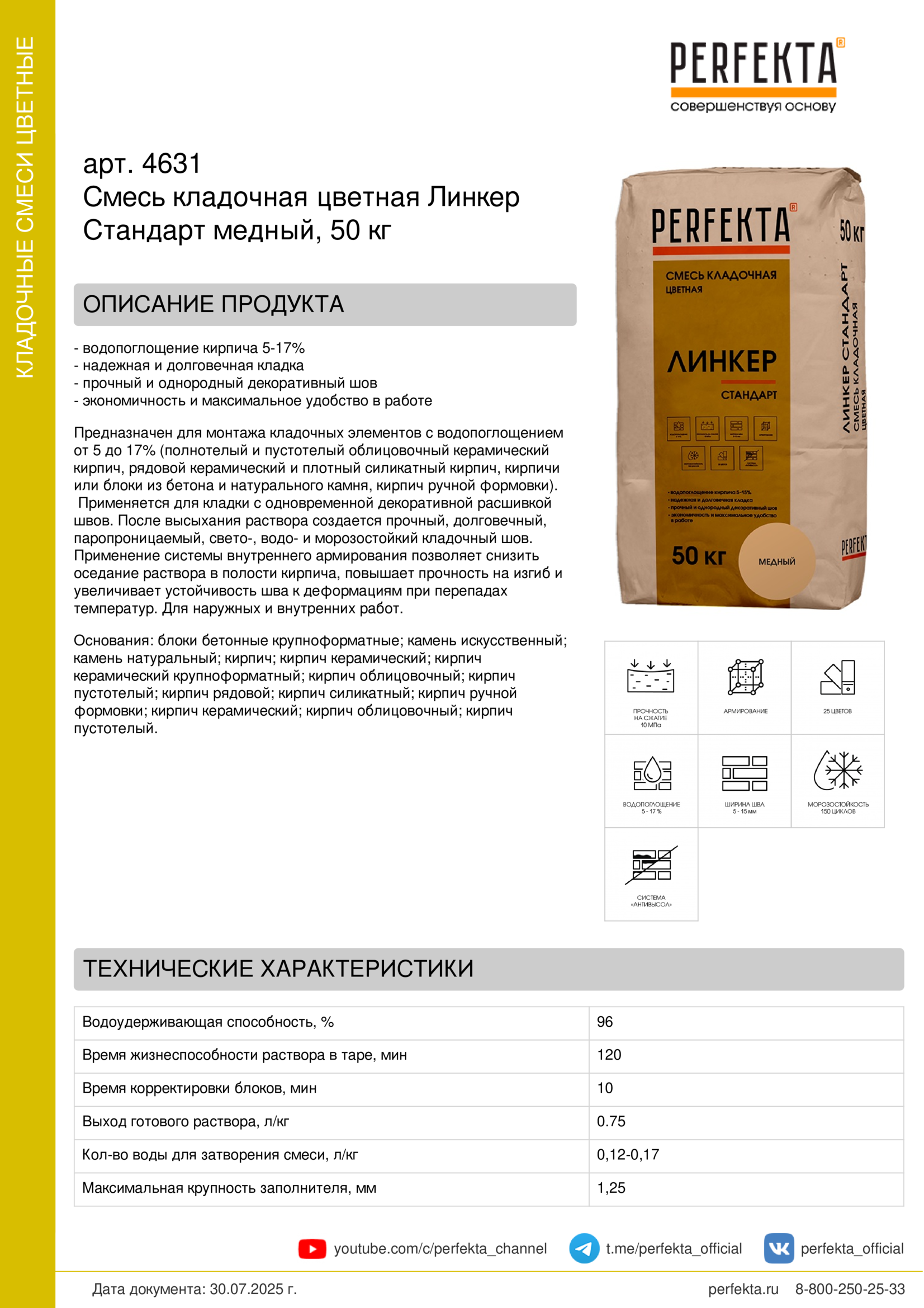 • Смесь кладочная цветная Линкер Стандарт медный, 50 кг