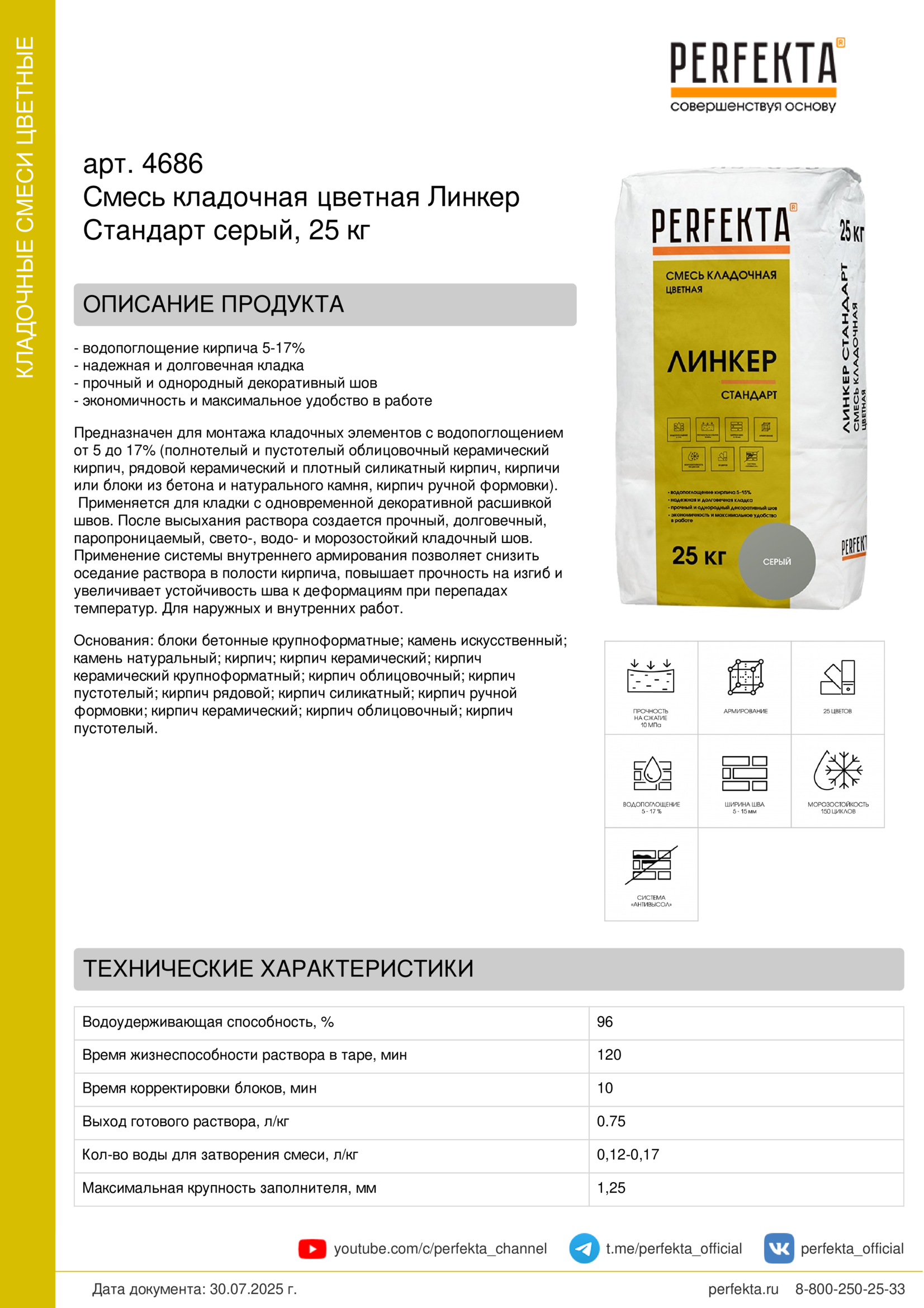 Продукт подлежит обязательному декларированию. Актуальная декларация размещена на сайте perfekta.ru, а также на сайте Росаккредитации https://pub.fsa.gov.ru/rds/declaration.