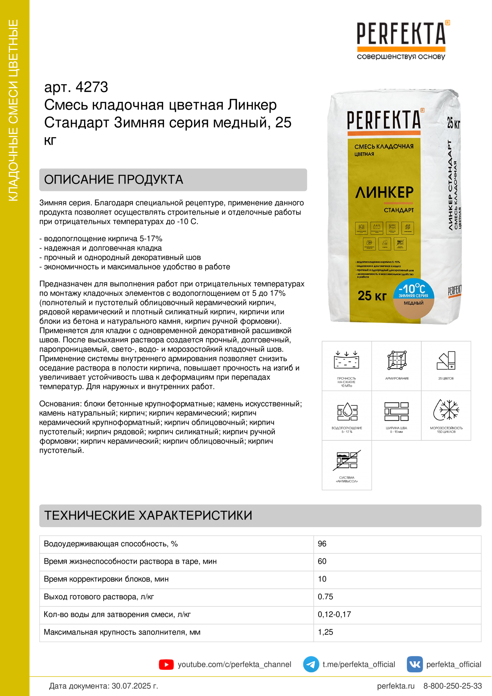 Все рекомендации и технические характеристики верны при температуре окружающей среды +20°С и относительной влажности 60 %. Качество материала гарантируется только при точном соблюдении инструкции производителя по технологии применения и требований СНиП и СП. Данная инструкция теряет силу после появления новой версии на сайте perfekta.ru.
