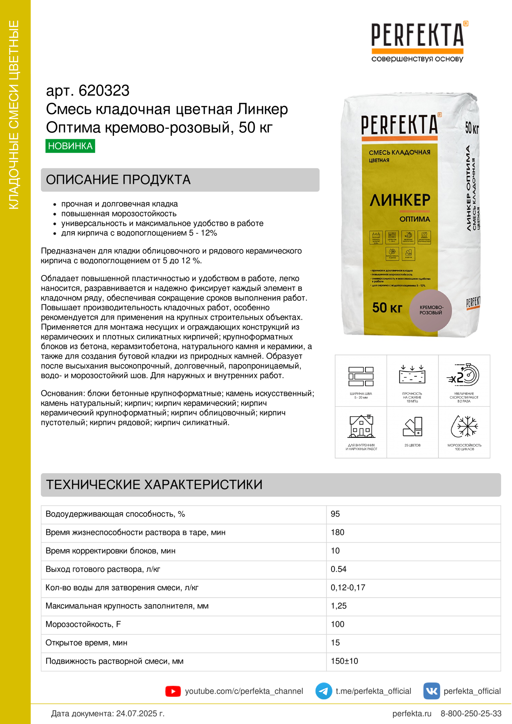 • Смесь кладочная цветная Линкер Оптима кремово-розовый, 50 кг