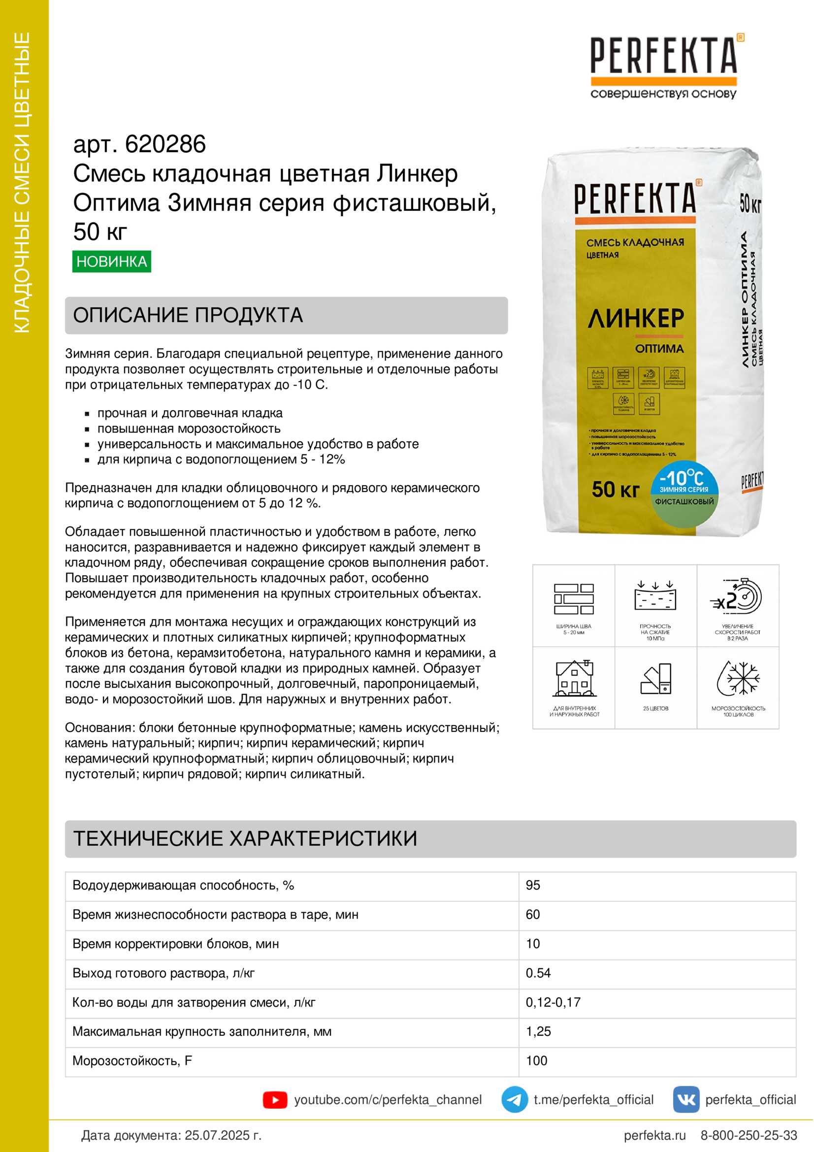 Зимняя серия. Благодаря специальной рецептуре, применение данного продукта позволяет осуществлять строительные и отделочные работы при отрицательных температурах до -10 С.
