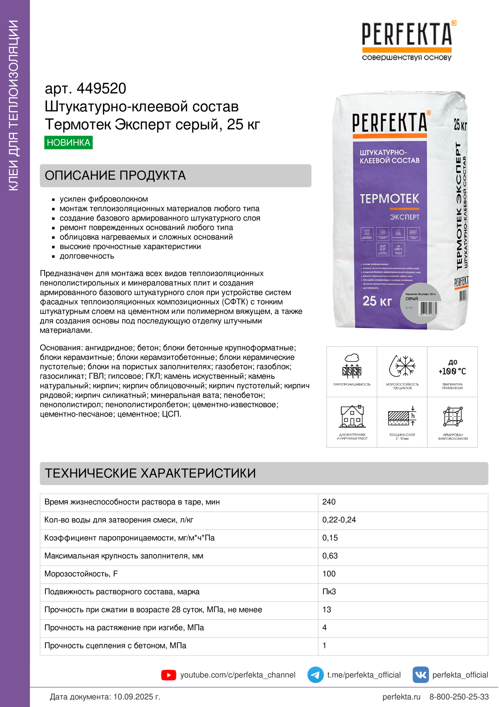 Все рекомендации и технические характеристики верны при температуре окружающей среды +20°С и относительной влажности 60 %. Качество материала гарантируется только при точном соблюдении инструкции производителя по технологии применения и требований СП 293.1325800.2017. Данная инструкция теряет силу после появления новой версии на сайте perfekta.ru.