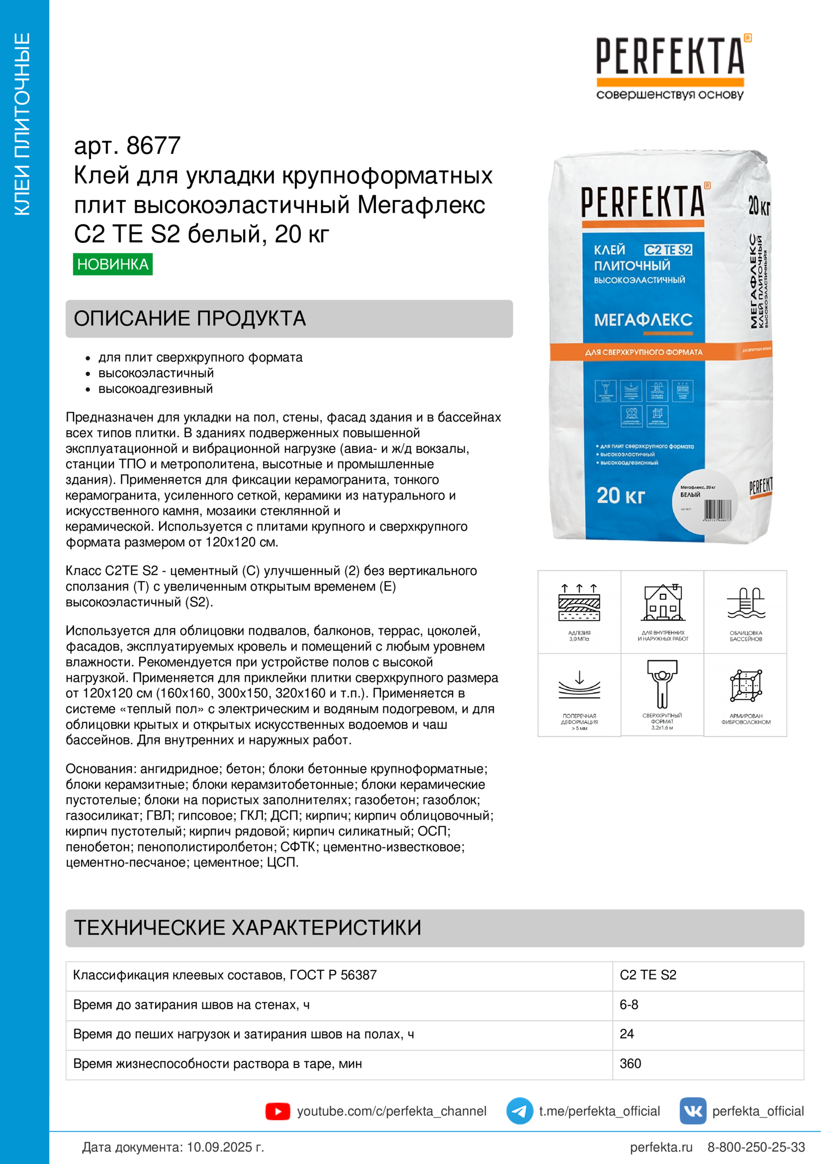 Все рекомендации и технические характеристики верны при температуре окружающей среды +20 0 С и относительной влажности 60 %. Качество материала гарантируется только при точном соблюдении инструкции Производителю по технологии применения и требований СНиП и СП. Данная инструкция теряет силу после появления новой версии на сайте perfekta.ru.