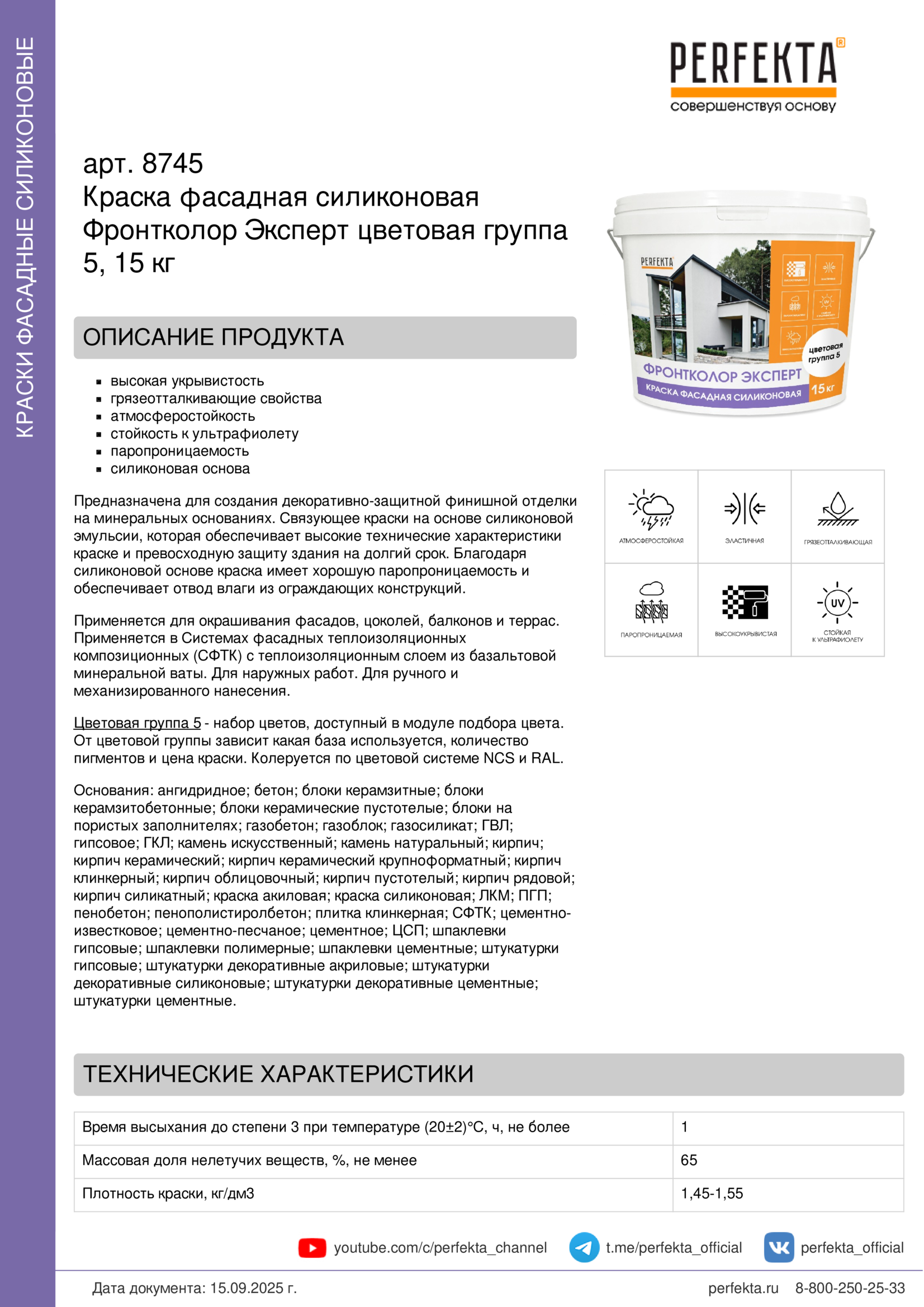 Краска фасадная силиконовая Фронтколор Эксперт цветовая группа 5, 15 кг