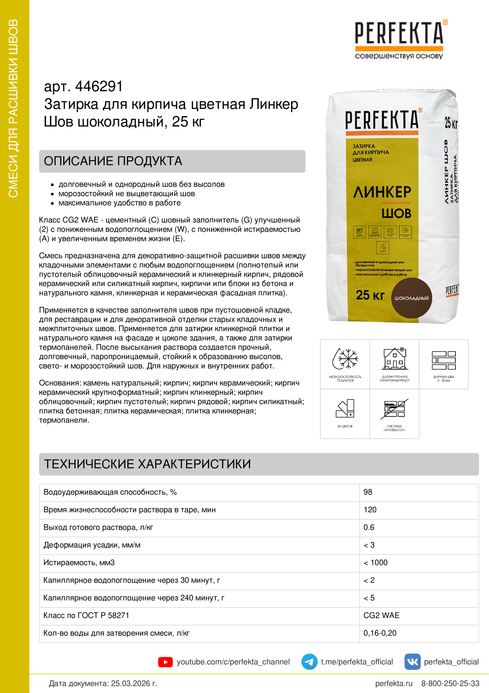 Смесь предназначена для декоративно-защитной расшивки швов между кладочными элементами с любым водопоглощением (полнотелый или пустотелый облицовочный керамический и клинкерный кирпич, рядовой керамический или силикатный кирпич, кирпичи или блоки из бетона и натурального камня, клинкерная и керамическая фасадная плитка).