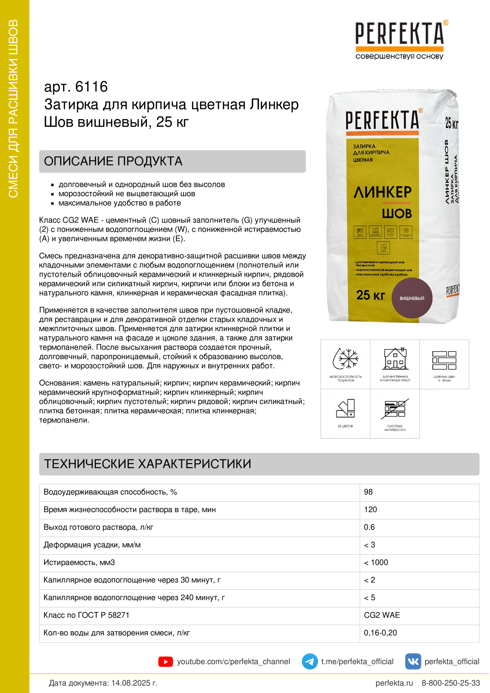 Смесь предназначена для декоративно-защитной расшивки швов между кладочными элементами с любым водопоглощением (полнотелый или пустотелый облицовочный керамический и клинкерный кирпич, рядовой керамический или силикатный кирпич, кирпичи или блоки из бетона и натурального камня, клинкерная и керамическая фасадная плитка).