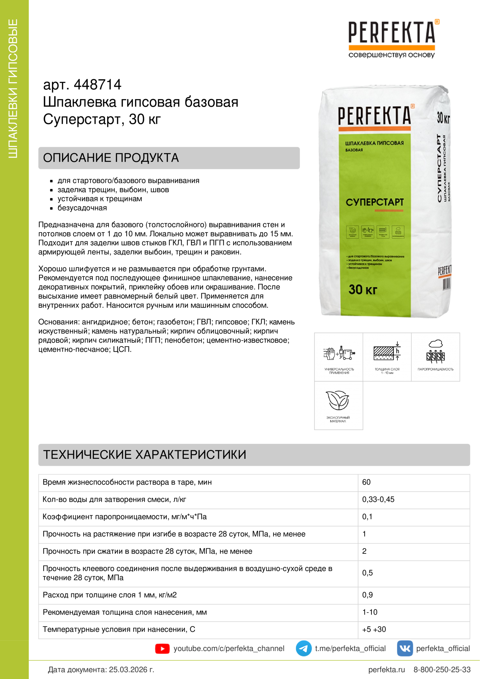 ВНИМАНИЕ! Все рекомендации и технические характеристики верны при температуре окружающей среды +20 ºС и относительной влажности 60%. Качество материала гарантируется только при точном соблюдении инструкции производителя по технологии применения и требований СНиП и СП. Данная инструкция теряет силу после появления новой версии на сайте perfekta.ru.