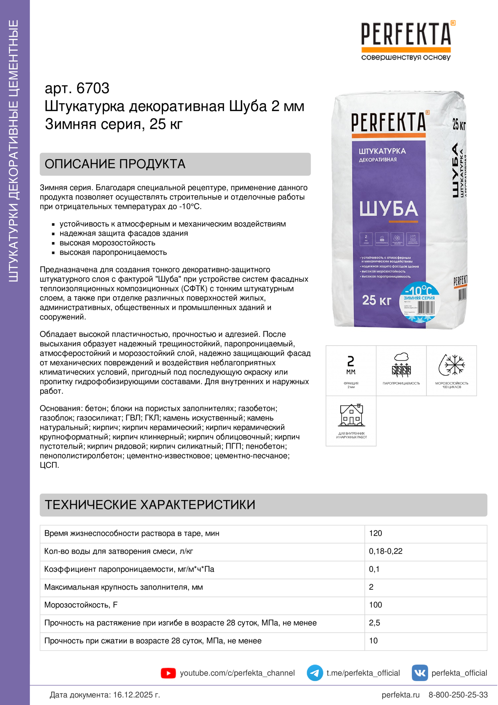 Все рекомендации и технические характеристики верны при температуре окружающей среды +20°С и относительной влажности 60 %. Качество материала гарантируется только при точном соблюдении инструкции производителя по технологии применения и требований СНиП и СП. Данная инструкция теряет силу после появления новой версии на сайте perfekta.ru.