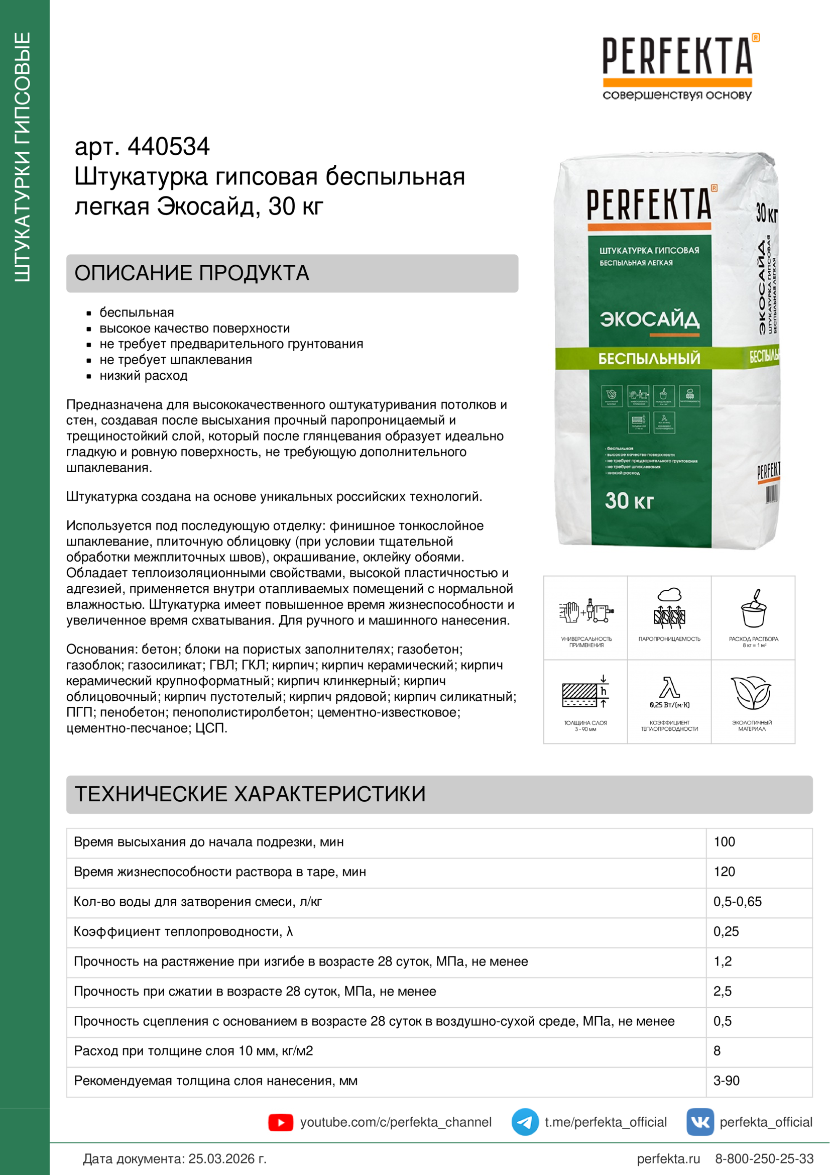 Все рекомендации и технические характеристики верны при температуре окружающей среды +20°С и относительной влажности 60%. Качество материала гарантируется только при точном соблюдении инструкции производителя по технологии применения и требований СНиП и СП. Данная инструкция теряет силу после появления новой версии на сайте perfekta.ru.
