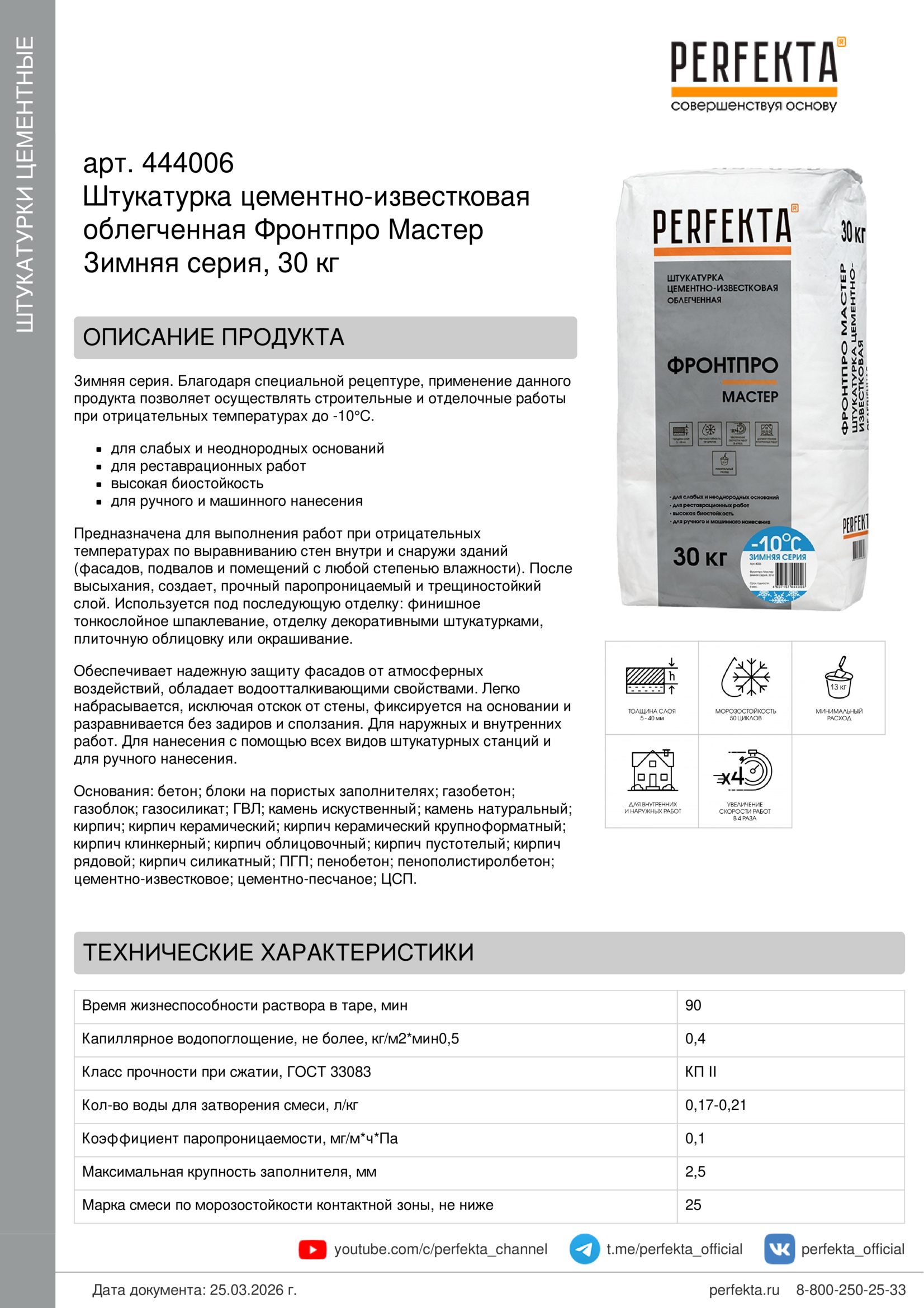 Все рекомендации и технические характеристики верны при температуре окружающей среды +20°С и относительной влажности 60 %. Качество материала гарантируется только при точном соблюдении инструкции производителя по технологии применения и требований СНиП и СП. Данная инструкция теряет силу после появления новой версии на сайте perfekta.ru.