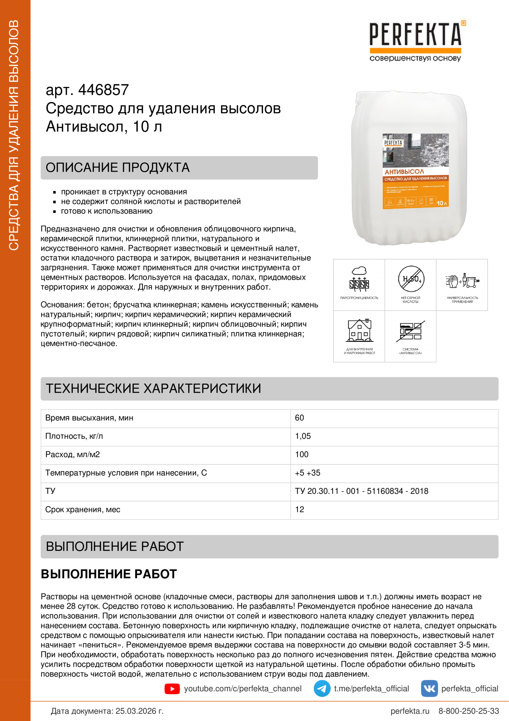 Предназначено для очистки и обновления облицовочного кирпича, керамической плитки, клинкерной плитки, натурального и искусственного камня. Растворяет известковый и цементный налет, остатки кладочного раствора и затирок, выцветания и незначительные загрязнения. Также может применяться для очистки инструмента от цементных растворов. Используется на фасадах, полах, придомовых территориях и дорожках. Для наружных и внутренних работ.