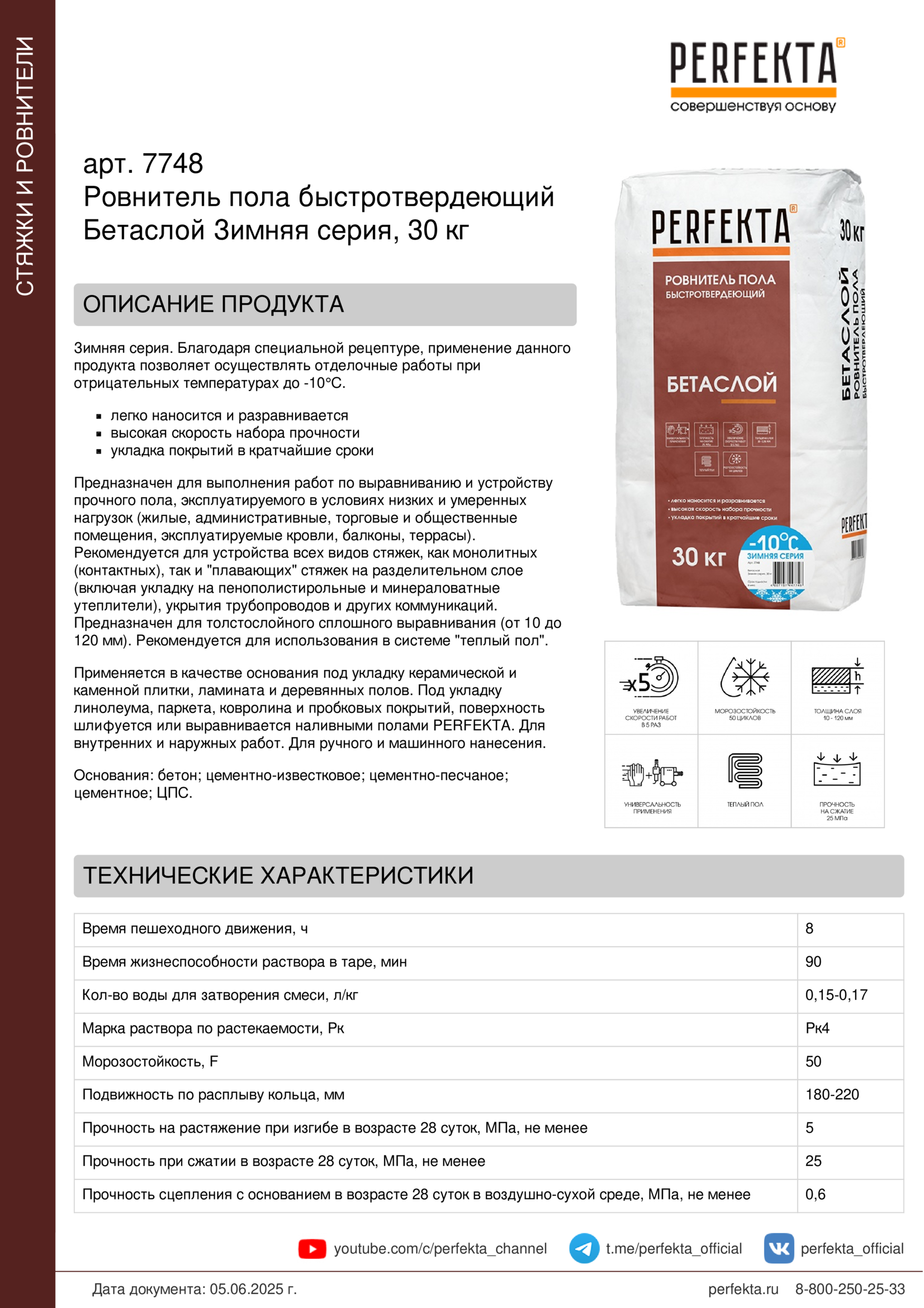 Все рекомендации и технические характеристики верны при температуре окружающей среды +20°С и относительной влажности 60 %. Качество материала гарантируется только при точном соблюдении инструкции производителя по технологии применения и требований СНиП и СП. Данная инструкция теряет силу после появления новой версии на сайте perfekta.ru.