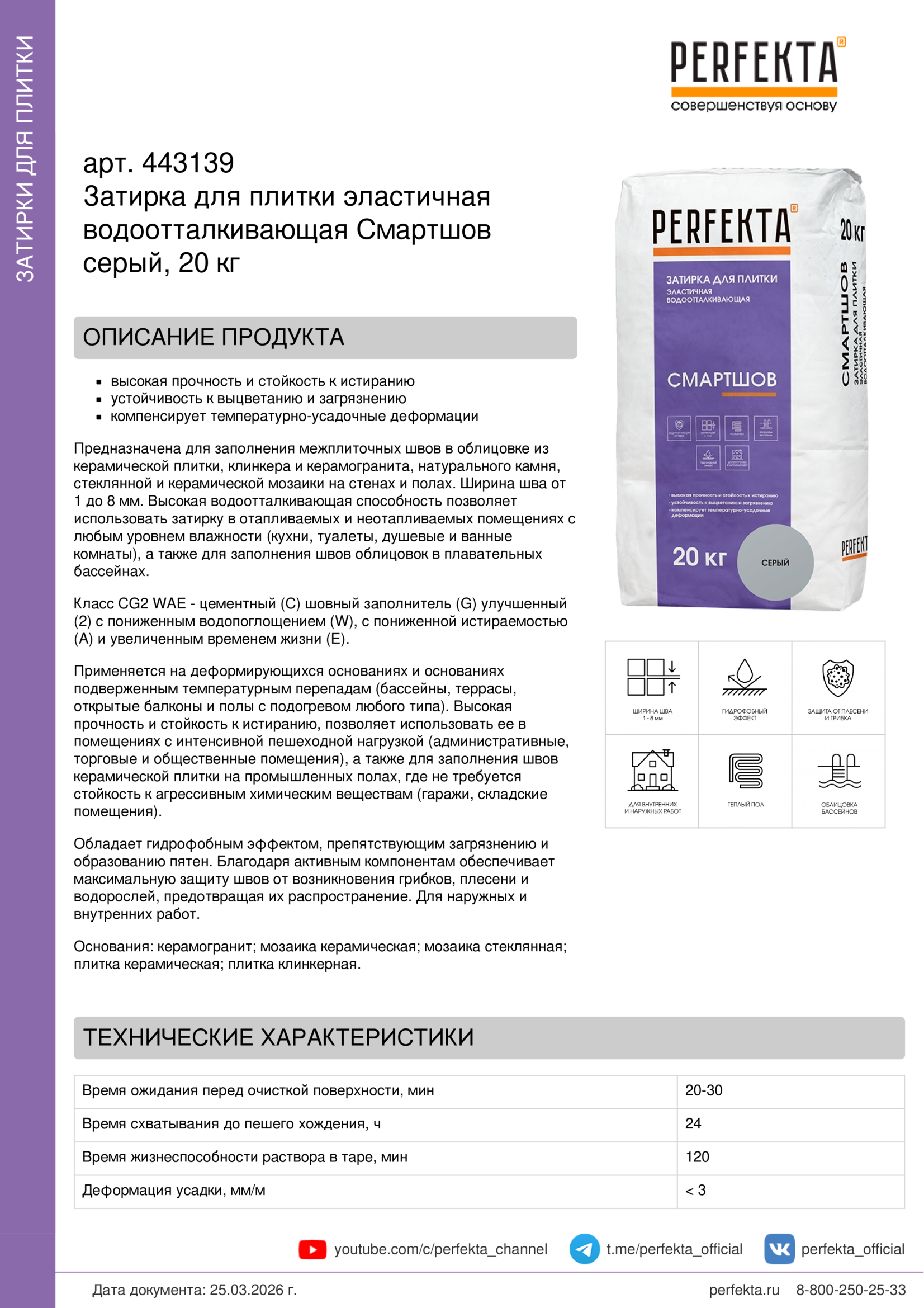 Продукт подлежит обязательному декларированию. Актуальная декларация размещена на сайте perfekta.ru, а также на сайте Росаккредитации https://pub.fsa.gov.ru/rds/declaration.