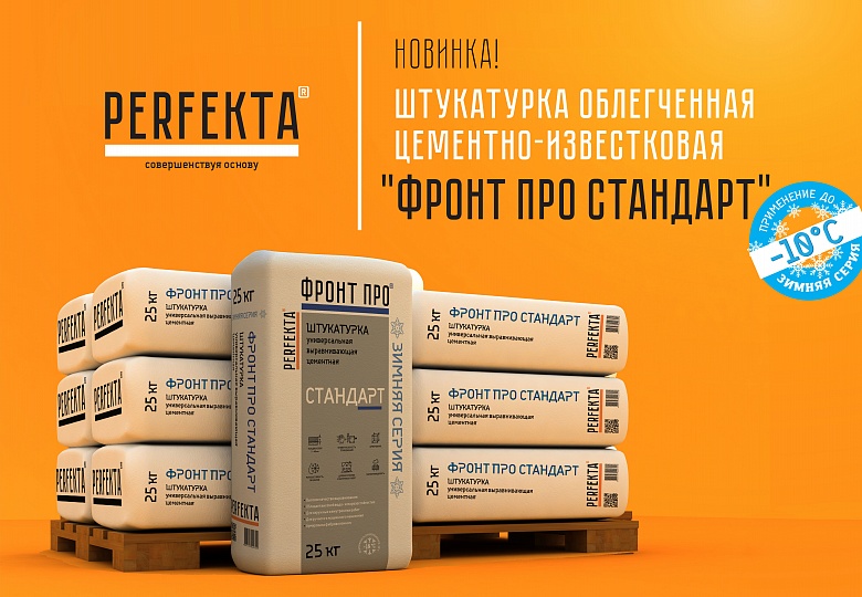 ШТУКАТУРКА ФАСАДНАЯ Perfekta "ФРОНТПРО Стандарт" ЗИМНЯЯ СЕРИЯ предназначена для выравнивания стен внутри и снаружи зданий (фасадов, подвалов и помещений с любой степенью влажности).