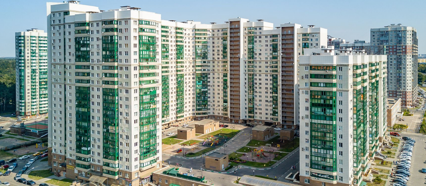 Окна в домах классические – на основе ПВХ-профиля и двухкамерного стеклопакета. Безопасность внутри корпусов обеспечивается за счет автоматических противопожарных систем. Территория новостройки открыта для проезда личного и специального транспорта. Дворы отделены от улицы лишь условно. Жилой комплекс выглядит как типичный проект квартальной застройки. Корпуса выглядят примерно одинаково и представляют собой стандартные бетонные высотки с нанесенным на фасады зеленым узором. Дома расположены по принципу квартальной застройки, между ними располагаются просторные открытые дворы.